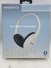 Magnavox Cloud Light Design Rich Bass Headphones White Brand new unopened. Magnavox EXTREME BASS offers a wider sound spectrum. The lower BASS response range. you not only hear deeper, richer BASS , you FEEL THE BASS. Huge drivers for Maximum Sound that deliver distortion free music up to max power . Non returnable - due to health and safety reasons. PLEASE BE SURE OF YOUR PURCHASE.