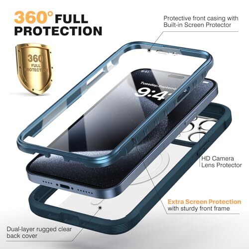 Return Policy Fast Delivery Trusted seller Magnetic for iPhone 15 Pro Max Case [Compatible with MagSafe] Built-in Anti-Scratch Screen Protector, Military Drop Proof 15 Pro Max Phone Cover 6.7 inch,Magnetic Storm Blue Product Description 360 Degree Full Body Rugged Protection:Dual layer provides 360 degree full body rugged protection. Soft TPU shock absorption and raised 4 corners surround your phone and protect it from accidental drops and falls. Provide tempered glass camera lens protector that can protect the camera 100% and will not affect the quality of the photo Built-in screen protector: clear designed case with built-in touch sensitive and anti-scratch screen protector, protect the fragile glass from scratches and cracks Extra Protection for the Screen and Camera:1.5mm raised screen edge and 3.8mm raised camera edge provide extra protection for your phone screen and camera Supports Wireless Charging:Works 100% with wireless charging pad, don't need to remove the case Compatibility & Support:Easy to install or remove.Please feel free to contact us for any questions Shipping Returns Payment Shipping Shipping is FREE to all addresses other than APO/PO boxes in the lower 48 states. All our stock ships from US-based warehouses. Shipped via USPS or UPS (depending on location and package weight) Unless stated otherwise, all orders will ship within 24-72 hours of your payment being processed. Check our feedback to see the great reviews of FAST shipping we offer. Returns Seller does not accept returns Payment We currently accept payment via eBay managed payments only. Once payment is cleared, we will dispatch your shipment within 1-3 business days. Please refer to the "Shipping" tab for more information regarding shipping speed to your destination.