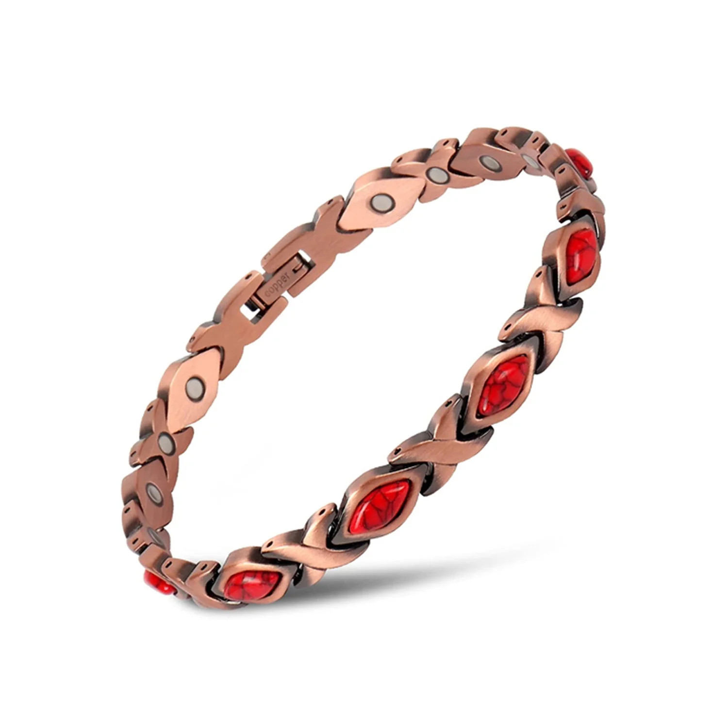 Title Magnetic Energy Therapy Pain Relief Copper Bracelet For Men And Women PRODUCT DESCRIPTION Discover the benefits of holistic healing with our Magnetic Energy Therapy Pain Relief Copper Bracelet For Men And Women. Designed to promote natural wellness, this stylish accessory combines traditional magnetic therapy with high-quality copper craftsmanship to support your overall health and vitality. Key features include: Enhanced pain relief—effectively alleviates arthritis discomfort, muscle tension, and inflammation for greater comfort and mobility. Improved circulation and energy—magnets help rebalance your body's energy flow, resulting in increased vitality and reduced fatigue. Health benefits of copper—may protect vital systems such as bones, nerves, and the cardiovascular system, while also promoting relaxation and better sleep. Elegant and durable design—meticulously crafted from hypoallergenic, waterproof copper and stainless steel, ensuring long-lasting wear and comfort. Universal fit—one size fits all, making it an ideal gift option for loved ones. Available in vibrant Red Turquoise, calming Blue Turquoise, or sparkling Crystal accents. Simply clean with a damp cloth to maintain its shine and efficacy. This versatile bracelet is perfect for daily wear, providing natural pain relief and energy balance wherever you go. Experience the timeless benefits of magnetic therapy combined with elegant style. Order your Magnetic Energy Therapy Pain Relief Copper Bracelet today and take a step towards a healthier, more balanced life! Powered by