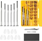 Magnetic Eyeglass Repair Kit, Glasses Repair Kit with Eyeglass Screws Include Nose Pads, Precision Screwdriver Tool Set and Tweezers for Eyeglasses, Sunglasses, Watch Clock Spectacle Repair 【Complete Eyeglasses Repair Kit】This repair kit includes all the eyeglasses screwdrivers, 4 size of eyeglass screws, 5 Pairs of Nose Pads, curved tweezer, cleaning cloth, screw caps for glasses repair. 【Magnetic Screws】These glasses screws are magnetic, and they are also not easy to rust, which is very suitable for glasses watches and so on. You can use the curved tweezers included in this kit to grab these small screws. 【Widely Application】The keychain screwdriver is suitable for many kinds of work and maintenance in our lives. It can be used to repair watches, glasses, mobile s, and small electrical equipment with screws. 【Keychain Screwdriver】The keychain screwdriver includes phillips flat tip screwdriver. It is a professional tool for repairing glasses, and you can also attach it to your key chain for standy applications. 【Warm notice】Please check the measurements of each item before purchasing our product to ensure the size of pieces in the repair kit matches your eyeglass.
