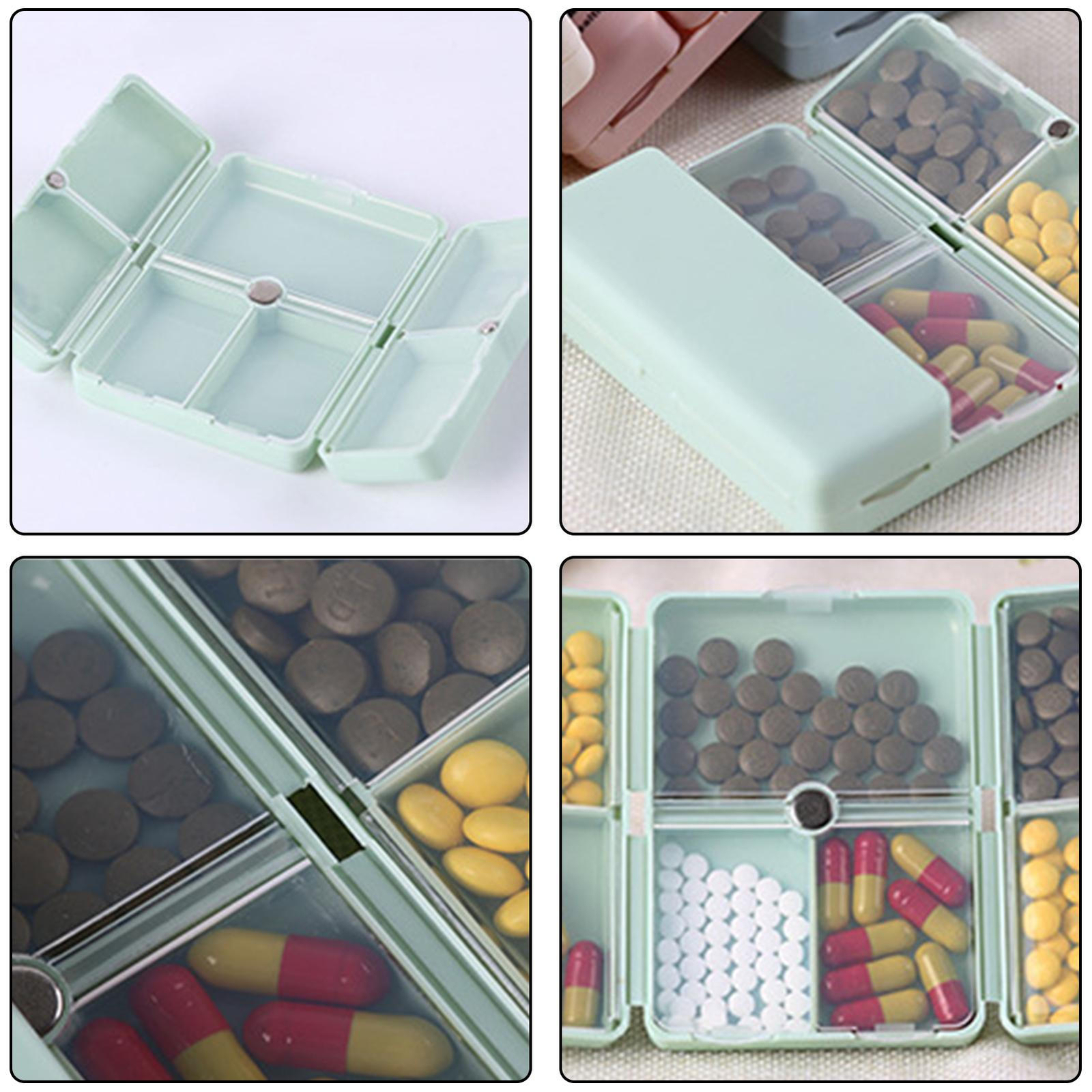 Pill Case Weekly Medicine Organizer Magnetic Foldable Travel Pill Organizer 【Safe Material】This foldable travel pill organizer is very safe because it is made of food-grade material and silicone, which is as safe as a pacifier. With our BPA free kits, you'll have peace of mind. 【Enough 7 Compartments】There are 7 compartments to suit your needs (6 small compartments for small pills and 1 large compartment for vitamin). Different sized pills can be placed in different sized compartments. 【Travel Portable】The small size of the travel pill organizer can easily fit into your suitcase, backpack, handbag or coat, making it very convenient to travel! 【Magnetic Design】The magnetic design is convenient for opening and closing, and the double-layer closed design prevents the pills from falling off and provides double-layer protection for pills. Once the button is locked and securely locked in place, the button will remain closed. 【Multi Purpose】The magnetic pill case has multi purposes. You can put vitamin, decorations, clips, hooks, screws and other small items inside the medicine pill storage case. Description: 1. The Travel Pill Container is made of high-quality food grade PP material, BPA free, durable and safe to use. 2. 7 compartments design, there are storage boxes of different sizes, which can hold medicines, jewelry, screws, etc. 3. Foldable and easy to carry, it takes up little space when you put the travel sick container in your bag or purse. 4. Each compartment has a cover to keep the pills clean and hygienic. 5. Unique magnetic design, this pill box is easy to fill and closes securely with magnets. Features: State: Brand New Material: ABS + PS Color: blue, green, pink, white (optional) Dimensions: Approx. 10 x 7 x 2.5 cm / 3.9 x 2.8 x 1 inch. Weight: Approx. 61g/2.2oz. List: 1*Travel Pill Container 1.You can make a Credit payment via Paypal.Paypal will let you use MasterCard,Visa to pay. 2.Payment should be completed within 5 days after auction closed, or unpaid dispute will be filed for an closing auction.An unpaid case will be filled after 4 days. ● We strive for 100% customer satisfaction ! ● Positive Feedback is very important to us. ● We hope that you contact us immediately BEFORE you give us neutral or negative feedback, so that we can satisfactorily address your concerns. ● We promise to offer the lowest price and high quality produce. Dear buyers : ● Welcome to my store ! ● Your satisfaction is our top goal,we appreciate your patronizing. ● If you have any questions, please contact us before leave negative or neutral feedback, we will try our best to solve the issue to your satisfaction, thanks ! ● If you are satisfied with our service, please rate the details of the transaction (Detailed Seller Ratings) on eBay. ● Please always talk to us via ebay Message. ● We appreciate your business and look forward to growing our e-Bay sales with satisfied customers.
