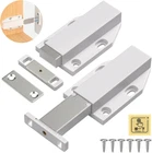 Push to Open: Built-in spring-loaded plunger, you can just simply press the door to latch or unlatch. Eliminates the need for handles or knobs. Create the clean, seamless look of no knobs. Suitable for using with hinges without self-closing feature. Long Stroke With Magnetic: Long stroke with built-in 1.18x0.4x0.15 inch magnet, more powerful magnetic force ensure a secure close point that make the door more tightly united and no more 'drifting open' doors. Make this push latch more suitable for medium size doors. Powerful Piston/Spring: Larger and thicker heavy-duty spring mechanism has a strong enough tension make this push opener an exceptionally durable and timeless choice. Ensure lifetime up to 20000 times. Easy to Install: Mounting the two elliptical holes firstly, in order to adjust place to suit closing. Then fix the plate with screw or adhesive (Comes in red and white colors and will be shipped randomly) at the inside of cabinet door. So you don't worry about whether it could be difficult to locate the mount exactly. Push to open door catch can be used in cabinet, drawer, cupboard, wardrobe, chipboard, sideboard, cooking utensils and another furniture. What You Get: 2 x Push Open Latch; 8 x Base Mounting Screws; 4 x Round Head Screws for Strike(Warm Tip: For external door, 3 mm compression stroke must be reserved during installation.)