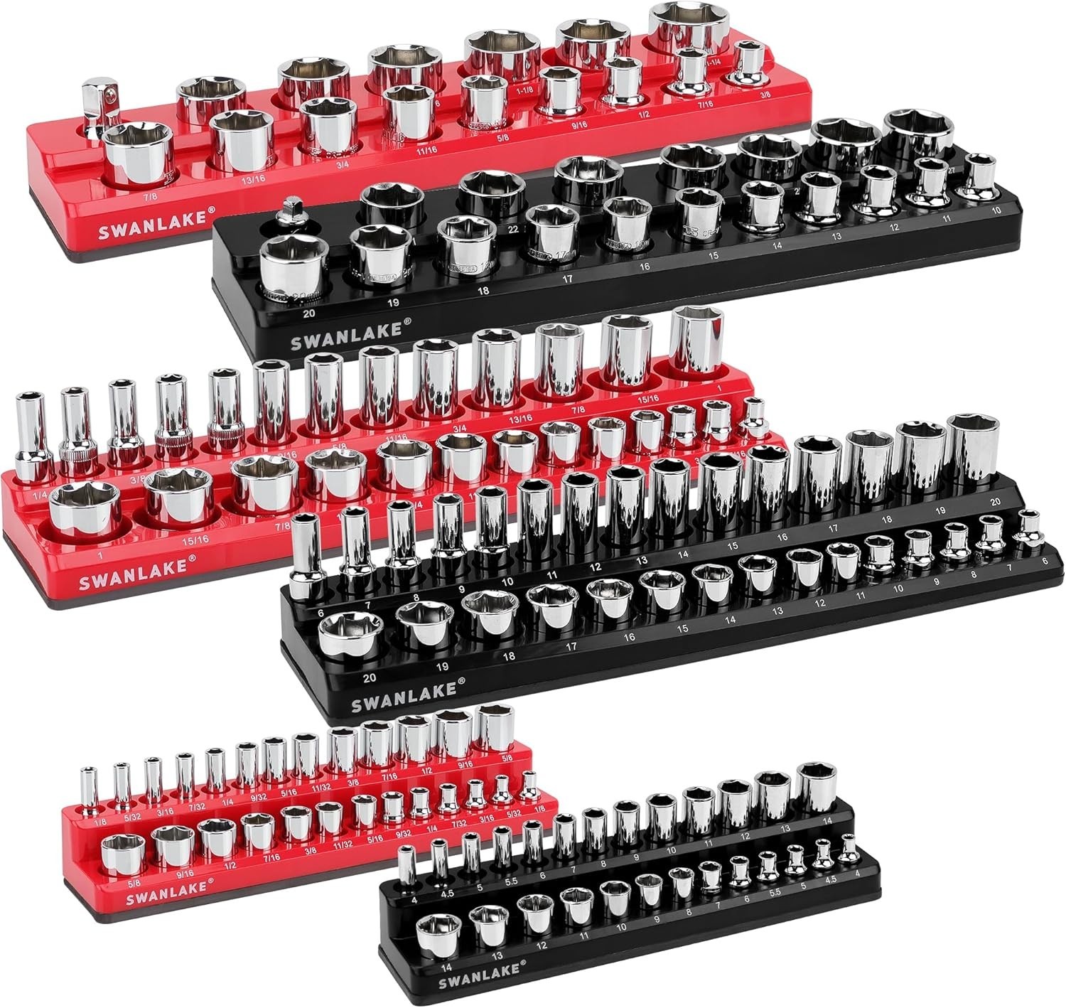Magnetic Socket Organizer Set 6pcs ABS Holds 143 Sockets for Garage Repair ‹ › ‹ › ‹ › ‹ › ‹ › ‹ › ‹ › ‹ › ‹ › ‹ › Magnetic Socket Organizer Set 6-Piece Set to Elevate Your Garage Repair Experience Key Features: Constructed from heavy-duty molded ABS plastic for exceptional durability. Accommodates a total of 143 shallow and deep sockets, including both Metric and SAE types. Set includes 3 black metric and 3 red SAE magnetic socket organizers for 1/4", 3/8", and 1/2" drives. Strong magnetic base secures sockets in their designated spaces, ensuring they remain firmly in place. Rubber-made surface prevents scratches on metal tools and sockets, maintaining their pristine condition. Each tray is clearly marked with legible labels for effortless identification and selection. Transforms cluttered toolboxes and workspaces into an organized haven of efficiency. Benefits: Streamlines your workspace by keeping sockets easily accessible and organized. Durable materials ensure long-lasting use, making this set a wise investment for any DIY enthusiast or professional mechanic. The secure magnetic hold allows for quick and easy socket selection, enhancing workflow efficiency. The thoughtful design minimizes potential damage to your valuable tools. Why Choose Our Magnetic Socket Organizer Set? Say goodbye to the chaos of disorganized tools in your garage! Our Magnetic Socket Organizer Set is more than just a storage solution; it's a testament to efficient craftsmanship and intelligent design. This 6-piece set offers both style and function, transforming your workspace into a well-oiled machine where every socket has its designated home. Upgrade your garage organization today and experience the pleasure of having every tool at your fingertips. Order now and unlock a new level of convenience and professionalism in your repair work! Shipping Free & Fast Shipping - We offer free shipping to most of the USA with a normal delivery time of 3-7 days. However, due to the current situation, additional delivery time (up to 3 weeks) may be required for some items. Alternative Carriers - We may use alternative carriers (e.g. USPS, FedEx, UPS, etc.) to ensure your package arrives safely and on time. Due to the use of multiple carriers, we are unable to provide a tracking number automatically. Handling Time - Orders are processed and shipped within 1-2 business days of receiving cleared payment. Shipping Restrictions - Shipping to Alaska, Hawaii, Puerto Rico, Guam, and other US territories may incur shipping charges or delivery restrictions. Please contact us before ordering, or your order can be refunded/cancelled. State Restrictions - There may be restrictions based on your state of purchase. For example, certain items may not be shipped to California due to state regulations. Contact for Tracking Updates - If you require tracking updates or have any concerns about the delivery of your order, please feel free to contact us, and we will be happy to assist you. Return 30-Day Hassle-Free Returns - We want you to be completely satisfied with your purchase. If you are not, you can return the item within 30 days of receiving it for a full refund or exchange. Easy Return Process - To start a return, simply contact us and we will provide you with a prepaid return shipping label and detailed instructions. Restocking Fee - There are no restocking fees for returns. However, the buyer is responsible for return shipping costs if the return is not due to a seller's error. Refund Processing Time - Refunds will be processed within 5 business days of receiving the returned item in its condition. Payment We accept all major credit cards, PayPal, and Apple Pay for your convenience. Your payment information is secure and encrypted to ensure a safe and seamless transaction. Please complete your payment within 3 days of purchase to avoid any delays in shipping. Feedback Your feedback is extremely important to us. We strive to provide the best products and customer service possible. If you are satisfied with your purchase, please take a moment to leave us a positive review. If you have any concerns or issues with your order, please contact us before leaving negative feedback. We are committed to resolving any problems and ensuring your satisfaction. Contact Us If you have any questions or concerns, please feel free to out to our customer support team. You can contact us through the eBay messaging system. We are available Monday to Friday, 9:00 am to 5:00 pm EST, and we will do our best to respond to your inquiry within 24 hours. Buy it now and enjoy a pleasant shopping experience! Unit Quantity: 6 Features: Magnetic,Socket Organizer,Heavy Duty,Molded ABS Plastic,Secure Fit,Non-Scratch Rubber Surface,Legible Labels,Clutter Organizer Type: Tool Storage Accessory Number of Items: 6 Number of Drawers: 0 Material: ABS Size: Large Mounting: Free Standing Capacity: 143 Pcs Color: Red Finish: Matte Unit Type: Unit