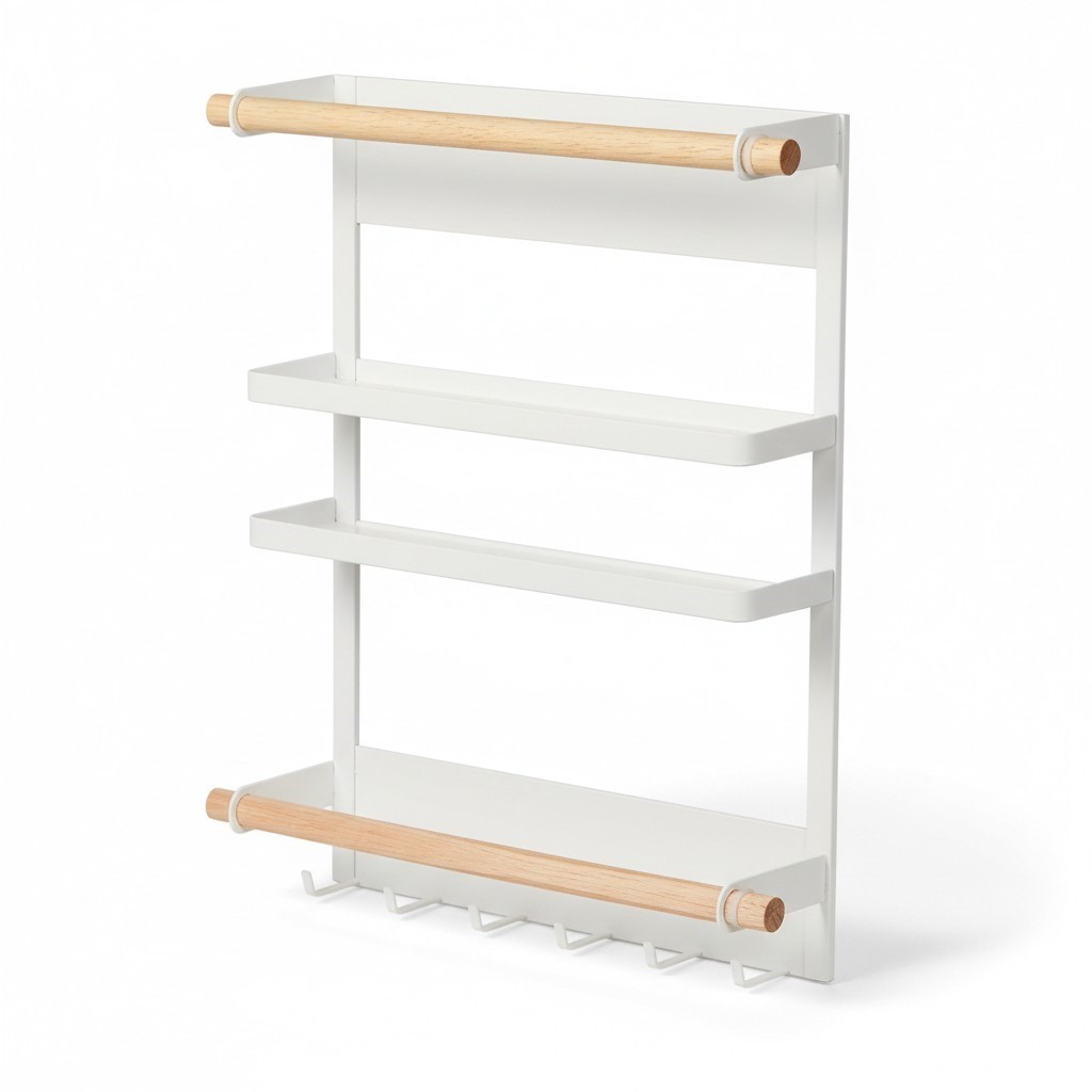 Magnetic Spice Rack for Fridge – Utensil Holder – Paper Towel Roll – 6 Hooks – 1 Shelf Magnetic Spice Rack for Fridge – Utensil Holder – Paper Towel Roll Rack – 6 Hooks – 1 Shelf 🧂🧻✨ Strong magnetic spice rack for kitchen walls or fridge doors • Includes 1 shelf , 6 hanging hooks and paper towel holder • Ideal for organising spices, utensils, foil, cling film and kitchen accessories. Magnetic Rack Spice Storage 6 Hooks Paper Towel Holder 1 Shelf Kitchen Organiser 🍽️ Product Description This magnetic spice rack organiser is a space-saving must-have for any modern kitchen. Easily attaches to your fridge, washing machine, metal cabinet or any iron surface. Perfect for keeping spice jars, condiments, oils, seasonings, herbs, sauces, tea tins, coffee canisters and cooking essentials within easy reach. With 6 strong hooks included, you can hang utensils, scissors, spatulas, ladles, oven gloves, tea towels and more. The built-in paper towel roll holder fits foil, cling film, baking paper or any standard kitchen roll. Ideal for small kitchens, rented homes, student flats, caravans, pantries, utility rooms and compact spaces. ✨ Key Features 🧲 Strong Magnetic Back – No drilling, screws or damage to surfaces 🧂 Spice Shelf – Holds jars, seasoning pots and kitchen essentials 🧻 Paper Towel Holder – Fits standard kitchen rolls, foil & cling film 🔗 6 Metal Hooks – Hang utensils, tools, towels & accessories 🏡 Space-Saving Kitchen Storage – Perfect for maximising small spaces ✔️ Sturdy & Durable – Metal construction for long-lasting use 🍳 Ideal Uses Fridge spice rack & condiment organiser Kitchen utensil hanging hooks Foil, cling film & baking paper holder Pantry or utility room storage RV / caravan & small apartment kitchens Home chefs, bakers & meal prep organisation 📐 Product Details Type: Magnetic Spice Rack & Paper Towel Holder Includes: 1 Shelf + 6 Hooks + Holder Mounting: Magnetic – no drilling required Material: Metal Use: Kitchen storage & organisation Colour: White Dimensions: H34 x L27.5 x D7cm 📦 What You Receive ✔ 1 x Magnetic Spice Rack with Hooks & Paper Towel Holder for Fridge Fast UK Shipping • UK Seller • VAT Registered 🇬🇧📦