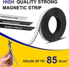 Magnetic Tape, 1 Roll Magnetic Strip with Strong Self Adhesive Flexible Magnet T Product Description: Material Ferromagnetic Alloy Product Dimensions 0.5"L x 0.5"W x 0.07"Th Shape Rectangular Item Thickness 0.07 Inches 【MAGNET TAPE SET】You will get a set of 1 roll of magnetic tape, each of 12.7mm/0.5 inches wide, 2.5M/8.2 feet long, and 1.8mm/0.7 inches thick. Sufficient quantity and length to meet your various usage needs,you can add several or longer magnet strips for heavier things 【HIGH QUALITY MAGNET STRIPS】Our magnetic tape roll is made of high-quality materials, surface protection, strong adhesive in the middle, and thickened magnetic material. The reinforced adhesive and thickened magnet can withstand most objects weighing up to 3.5 ounces (about 100 grams) and can hold heavier items 【STRONG ADHESIVE】One side of the magnetic stripse is a flexible magnet, and the other side is a sticky backing. High quality adhesive can quickly and firmly bond, and has a long usage time, which can be well adhered to smooth surfaces, such as plastic, metal, ceramic tiles, smooth wooden block surfaces, and so on 【EASY TO USE】 Magnetic strips with adhesive backing flexible in use and easy to cut,Just peel off the protective layer of the adhesive on the back, You can use scissors to cut the magnetic strip into the required size and increase the magnetic force by pasting multiple magnetic strips in parallel to release more and heavier items 【WIDE APPLICATION】 Magnetic self-adhesive tape can attach photos, cards, drawings, posters, etc. to metal surfaces such as refrigerators and magnetic plates. You can also put some small things on top, such as scissors, rulers, pencil sharpeners, or any lightweight metal objects. Perfect for schools, crafts, offices, and families. Especially suitable for teachers, students, office workers, DIY thinkers, mothers,