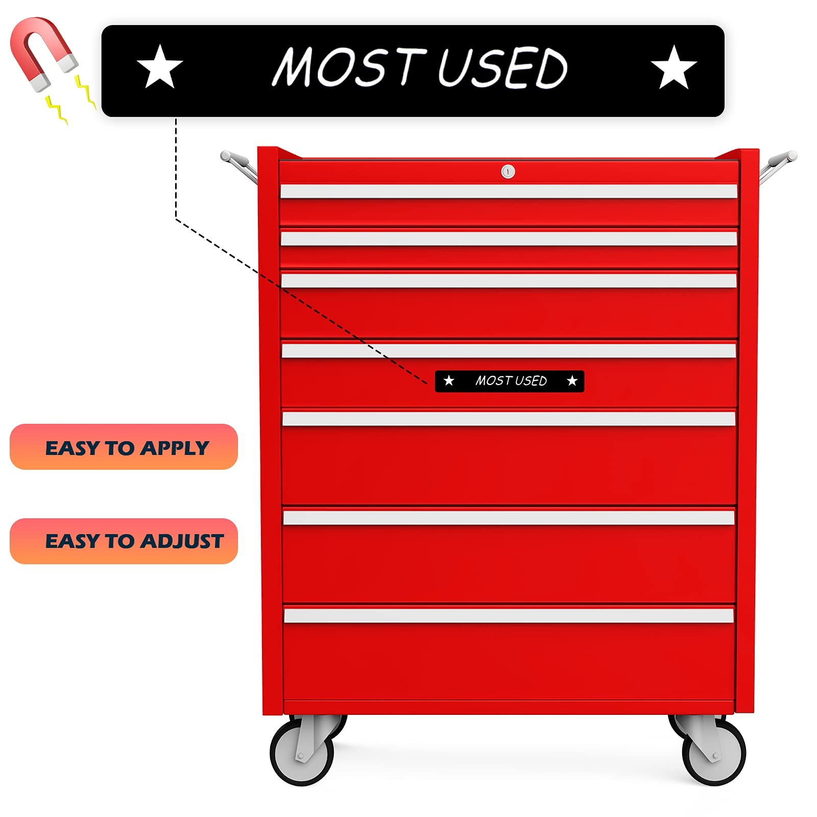 Features:Quality material:The toolbox labels are made of magnets material, they can be easily applied or moved to metal surfaces and repeatedly applied because of the magnet back.Applications:With these magnetic labels, you can quickly identify which tools are in which drawer. They provide an easy way for others to find the tools they need and where to put them away, only suitable for steel drawers, boxes, cabinets.Specifications:Material: magnetsColor: blackSize: approx. 4.5 x 0.75 inchesPackage includes:66 x Magnetic labels Warm notes:Do not soak in water.Manual measurement, please allow slight errors in size.The words printed on the product are not worked as brand names, our brand is Tenare. Large quantity: there are 66 pieces of magnetic toolbox labels in the package; Match most popular toolbox layouts, easy organization labels for all brands of tool boxes, quick and easy to use, organize boxes, drawers and cabinets in a simple way Size information: magnetic labels for toolbox measure about 4.5 x 0.75 inches, easy to read lettering, only suitable for steel drawers, boxes, cabinets Easy to find: with these magnetic labels, you can quickly identify which tools are in which drawer; They provide an easy way for others to find the tools they need and where to put them away Reusable magnetic label: the toolbox labels are made of magnets material, they can be easily applied or moved to metal surfaces and repeatedly applied because of the magnet back Practical gifts: compared to traditional adhesive labels, these magnetic toolbox labels are easier to reposition, time-saving and convenient; The magnetic labels are in simple color, they are practical gifts for friends