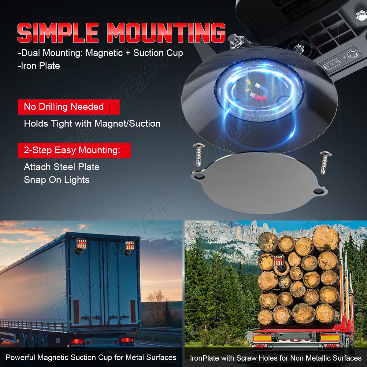 Experience next-generation towing safety with the USB-C Wireless Rechargeable Trailer Light Kit. Designed by a 15-member professional engineering team, this lighting system delivers exceptional performance through precise optical and structural research. Engineered for low energy use and high output, it offers a powerful combination of bright visibility, long runtime, and strong magnetic installation ideal for trucks, boats, RVs, and caravans. Features Stable Wireless Signals up to 100 Feet. Built-in antenna operates on a 2.4GHz frequency for uninterrupted signal transmission—ideal for extended towing setups. Adjustable Rubber-Coated Magnetic Mount. Easily installs on any metal surface like a truck bed or rooftop; holds securely even at speeds up to 50 mph. Fast USB-C Charging with Long Runtime. Charges in just 2.5 hours using the USB-C port and runs for up to 9 hours—no hardwiring required. Efficient and Ultra-Bright LED Output. Features ceramic base bulbs with enhanced heat dissipation, providing up to one mile of visibility and 60,000 hours of lifespan. Integrated Retroreflectors and Reverse Lights. Improve side and rear visibility from all angles while offering extra safety functions. Rugged IP67 Waterproof Design. Withstands temperatures from -40°F to 149°F, rain, and dust—ready for any environment. Engineered for Longevity and Reliability. Backed by a one-year warranty and expert support within 24 hours. Specifications: Charging Port: USB-C (DC 5V, 2000mA) Battery Capacity: 3.7–4.2V, 2600mAh Charging Time: Approx. 2.5 hours Runtime: Up to 9 hours Operating Temperature: -40°F to 149°F (-40°C to 65°C) Waterproof Rating: IP67 Material: ABS Base, PC Lens Visibility Range: Up to 1 mile LED Lifespan: Up to 60,000 hours Mount Type: Adjustable Magnetic Base Package Includes: 2 × Wireless Trailer Lights (Rechargeable) 1 × 7-Pin Round Signal Transmitter 1 × USB-C Charging Cable 1 × Car Charging Cable On Jan 21, 2026 at 01:07:27 PST, seller added the following information: