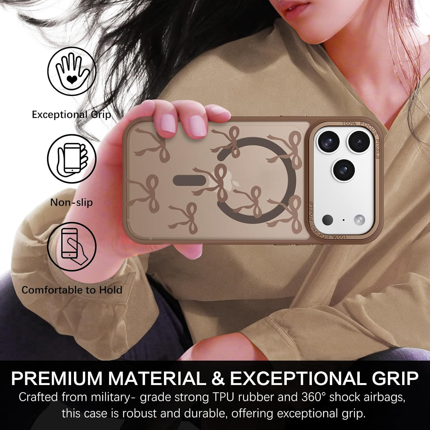 Menu Other Items Feedbacks About Us Contact Us Add To Favorites Magnetic for Iphone 17 Pro Max Case with Cute Ribbon Bows Pattern, [Compatible with Magsafe] Translucent Matte Anti-Slip Slim Women Girl Protective Cover for Iphone 17 Pro Max 6.9", Brown ❤【Compatible with iPhone 17 Pro Max Case】This translucent matte case is ONLY Compatible with 6.9 inch iPhone 17 Pro Max, will not fit for any other phone models (No screen protector included) ❤【Compatible with Mag-Safe】Built-in magnet arrays to snap your iPhone 17 pro max securely to your device and make magnetic wireless charging a breeze without removing the case. Give your iPhone 17 Pro Max vibrant all while staying functional and protected ❤【Cute Bow Patterns】The cute and fashionable ribbon bows print patterns makes your iPhone 17 pro max look unique, fashionable, and eye-catching. These patterns was made with a unique printing technique, won't rub off, fade or smudge. Cute, clear and stylish 3d bows line print allow to retain phone's original look without losing your own personality ❤【Translucent Matte Design】The semilucent back prevents the case from getting dirty or yellowing, your iPhone logo is faintly displayed.The matte texture provides a better grip and makes the phone more advanced ❤【Slim and Smooth】Being snug fit with premium PC and TPU material and fine craftsmanship, this slim and lightweight bow print pattern design case is durable enough to protect your iPhone 17 pro max from bumps, scratches and occasional drops ❤【Screen and Camera Protection】Raised camera and screen edges help your phone protects against scratches.The front rugged bumper will protect your screen when placed face down. ❤【Precise Cutouts】All the button features and cutouts are where they should be, leaving plenty of space around the cutouts for easy connection. Accurate and precise ports allow easy access to all the functions of your phone .The tactile buttons covers bring you great responsive touch experience Product description BENTOBEN Magnetic for iPhone 17 Pro Max Case with Cute Ribbon Bows Pattern 1 Pink 2 Light Blue 3 Black 4 Brown 5 Green Item Specification Item model number XDD-Z3189-05-FBA Whats in the box Phone Case Color Brown Other display features Wireless Product Dimensions 6 x 4 x 0.6 inches Material Thermoplastic Polyurethane Compatible Devices iPhone 17 Pro Max 6.9" Item Weight 1.6 ounces Special features Flexible, Magnetic, Scratch resistant, Slim Fit, Wireless Charging Compatible Form Factor Basic Case Compatible Phone Models iPhone 17 Pro Max 6.9" Size iPhone 17 Pro Max 6.9" FREE SHIPPING We are always working hard to ensure your package arrives as soon as possible. Please understand that some factors like weather, high postal traffic, and the performance of shipping companies are outside of our control. We offer free shipping to the lower 48 states. We do not accept P.O. Boxes. Please provide a physical address. If you have a problem or question regarding your transaction please contact us immediately. We will work with you to resolve any problem you may have. Thank you