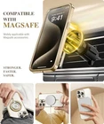 Return Policy Fast Delivery Trusted seller Magnetic for iPhone 15 Pro Max Case, Compatible with Magsafe, Built-in 9H Tempered Glass Screen Protector & Full Camera Protection, Full Body Plating Shockproof Phone Case for 15 Pro Max, Gold Product Description Stylish Metallic Shiny: Glossy Clear Magnetic Phone Case is designed for iPhone 15 Pro Max 6.7 inch. The case is crafted with soft and visually appealing plated edges and a transparent hard back cover. The bumper of the case is made with an exclusive plating technique that covers the soft TPU with a metallic plated layer. Put on the 15 Pro Max protective case and let's enjoy the astonishing beauty of this phone case. Stronger Magnetic Attraction: This 15 Pro Max magnetic case is equipped with powerful magnets, perfectly compatible with magsafe charging at any angle, lightning fast and safe. Moreover, this case is seamlessly compatible with variety of magnetic accessories, including magnetic power banks, magnetic car mounts, magnetic wallets, and more, providing superior wireless charging compatibility and user convenience than before. Full-Body Protection: The 15 Pro Max case is designed with glass front and back covers for complete 360° full-body protection. The included glass front cover provides excellent protection against scratches and impact damage while maintaining the original screen sensitivity. The soft TPU plated shock absorbing material protects your phone from accidental drops. Enhanced Camera Protection: Full coverage of the camera area for reinforced camera protection. No more worries about camera breakage and prevent dust from entering the camera of the 15 Pro Max phone. Precise cutouts ensure flash usage while having high quality captured photos and videos. Stay Pristine & Lifetime Replacement: for iPhone 15 Pro Max case maintains long-lasting clarity, saving you from unnecessary expenses of frequent clear case replacements. Quality Promised - any question, and we'll respond within 24 hours. Shipping Returns Payment Shipping Shipping is FREE to all addresses other than APO/PO boxes in the lower 48 states. All our stock ships from US-based warehouses. Shipped via USPS or UPS (depending on location and package weight) Unless stated otherwise, all orders will ship within 24-72 hours of your payment being processed. Check our feedback to see the great reviews of FAST shipping we offer. Returns Seller does not accept returns Payment We currently accept payment via eBay managed payments only. Once payment is cleared, we will dispatch your shipment within 1-3 business days. Please refer to the "Shipping" tab for more information regarding shipping speed to your destination.