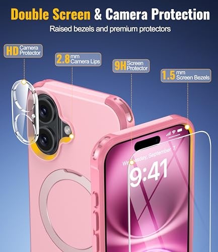 $ 26.04Magnetic iPhone 16 Case with Foldable Stand, Tempered Glass & Lens Protector, Gr