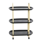 70s inspired rolling cart brings function and style to any free space; Thoughtfully designed with a sturdy steel frame and 4 locking casters, it's the perfect modern bar cart alternative, stylish storage solution, or simply a blank canvas for displaying decorative accents and tokens from travel This elegantly functional 3-tier trolley features sleek steel construction with a rounded modern boho edge 3-tier black steel and sand-colored plastic trolley with a smooth matte finish and 4 locking casters Includes four rolling casters for easy transportation from room to room; casters lock for stability Use to display plants and decorative accents, makeup and cosmetics, or as a playful bar cart alternative Trolley measures 33.875 in H x 22.625 in L x 14.375 in W; Maximum recommended weight capacity is 10 lbs per shelf