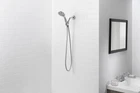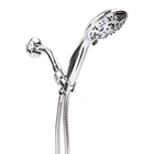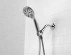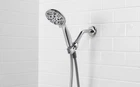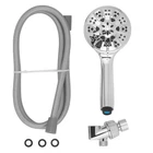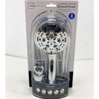 The Mainstays 5-Setting Handheld Shower Head features a smooth, chrome finish that is WaterSense certified to conserve water. Five water functions are available for a customizable shower preference: Full spray, power spray, full & power spray combo, massage, and pause. Note: The pause setting is designed to bring the water flow to as little as a trickle. It is not designed to completely stop the flow of water. Spray settings can be easily switched by rotating the lever on the handheld showerhead. The included 60 in. PVC hose provides flexibility for bathing pets or rinsing away soap in the bathtub. An included bracket holds the showerhead securely in place. Cleaning this chrome shower head with a soft, water-dampened cloth will protect the product and keep the finish looking its best for years to come. Includes 5 spray functions for the desired setting Maximum flow rate of 1.8 GPM is WaterSense certified to help conserve water without sacrificing performance Rotate the lever on the handheld to change settings 5 spray settings include: Full spray, power spray, full & power spray combo, massage, and pause 60 in. PVC shower hose provides more mobility for water flow Shower head bracket securely holds handheld in place Smooth, chrome finish