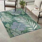 Introducing Mainstays 5'x7' Palm Plastic Outdoor Area Rug. Add your own unique style to your RV, picnic area, patio, or any outdoor living space with this beautiful reversible woven rug. The elegant palm pattern on both sides of this eye-catching rug creates an element of depth and lets you bring a touch of modern luxury wherever you go. No risk of fading or staining with this rug! Make the outdoors feel a bit more like home with this versatile, durable piece. Each rug is easy to clean, so you can spend more time enjoying your space and less time worrying about maintenance. Whether you are packing up your camper for an outdoor adventure or enjoying a sunny picnic in your backyard, the stain-resistant and fade-resistant properties of this beautiful area rug ensure that it will maintain its rich design and exceptional quality for years to come. For indoor or outdoor use. Stain and Fade Resistance for Long Wear and Durability Easy Care - Sweep, Vaccuum, or Rinse with Garden Hose Palm Pattern Reversible Ultra Light Weight - Easy to Pack and Travel With Water Drains off Surface Easily Rug Size: 5'x7' Pet and Family Friendly Made of 100% Olefin