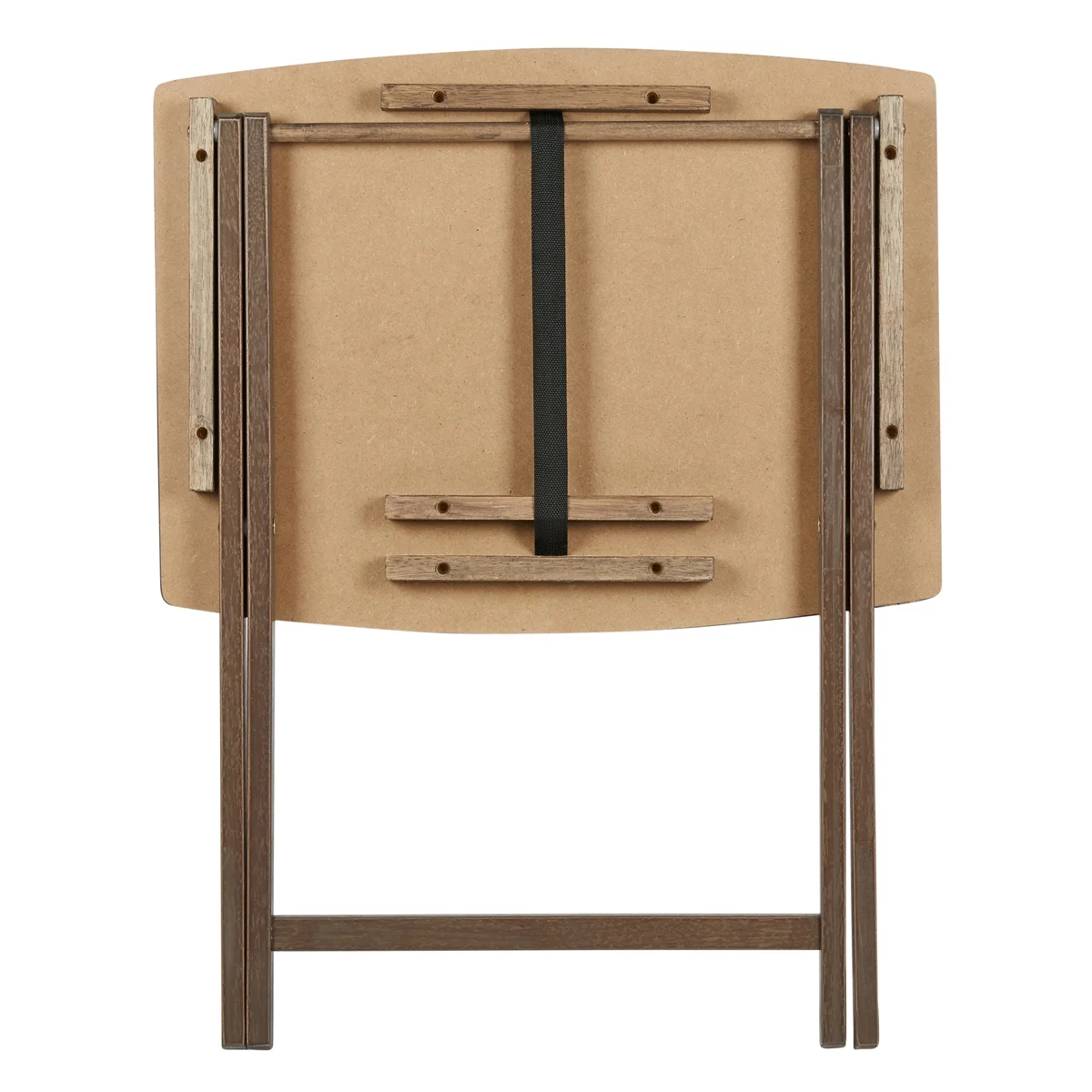 Product details Mainstays Indoor Oversized Single Folding Tray Table, Espresso, 26" x 23.6 x 17.7" inches. Assembly height 26 inches thoughtfully designed to effortlessly fold away conveniently when not in used, saving spaces when needed. Its classic minimal curved rectangular table top shape along with open up X-frame bases make these table not only look good but also help with stability. Its wooden rustic gray finish looks also sure to compliment any decor scheme! It is ready to use, stylish, durable, light weight and easy to store tables on hand! It sits at a perfect height while you're seated, and rest on intersecting legs to create a strong base for anything you put on its surface. It is the perfect addition to dorm rooms, or smaller living spaces. Use it to instantly creates a desk, small kitchen table and work surface, meals by the television. Its sleek design can also fit in with many styles of décor, a perfect choice for every home. Constructed of MDF tabletop and solid rubberwood leg. Table measurement 26" H x L 23.6" x W 17.7" inches. Enhance your living space with the Mainstays Indoor Oversized Folding Tray Table in Espresso color. This versatile and stylish table effortlessly combines functionality with Espresso finish, making it an ideal addition to any home. Elevate your home with the Mainstays Indoor Oversized Folding Tray Table, a versatile and reliable piece that effortlessly combines style and utility. Order yours today and experience the convenience of functional furniture that complements your lifestyle. Mainstay indoor XL oversize tray table folded dimension: 29'' H x 1.7'' W x 19'' L inches. No assembly require for XL folding tray tables. The weight of table is 4.55 KG which make it easy portable from one place to another. Unfold Mainstay Table Dimension: 26" H x 23.6" W x 17.7" L Folded Mainstay Table dimension: 29'' H x 1.7'' W x 19'' L Espresso color finish (brown tone) Sturdy and Durable Build: Crafted with a blend of premium materials, including MDF and solid Rubberwood, this table ensures a sturdy and durable construction. The solid Rubberwood legs provide reliable support, making it an ideal choice for various activities. Generous Dimensions: With an ample tabletop measuring H26" x L23.6" x W17.7" inches, this oversized folding tray table offers plenty of space for a variety of uses. Whether you're enjoying a meal, working on your laptop, or displaying decor, this table accommodates your needs with style. Easy to Store: The folding feature adds a layer of convenience, allowing you to effortlessly fold and store the table when not in use. Perfect for those with limited space, the table provides practicality without compromising on aesthetics. Espresso Elegance: The rich Espresso finish adds a touch of sophistication to your decor. The deep, warm color complements a range of interior styles, making it a versatile and stylish choice for any room. Lightweight and Portable: Weighing only 4.55 KG, this table is easy to move around as needed. Whether you're rearranging your living space or hosting guests, the lightweight design ensures you can effortlessly transport the table wherever it's needed. MDF Table Top for Easy Maintenance: The MDF tabletop offers a smooth and easy-to-clean surface. Whether it's for daily meals or creative projects, the tabletop provides a practical and low-maintenance solution. No Assembly required.