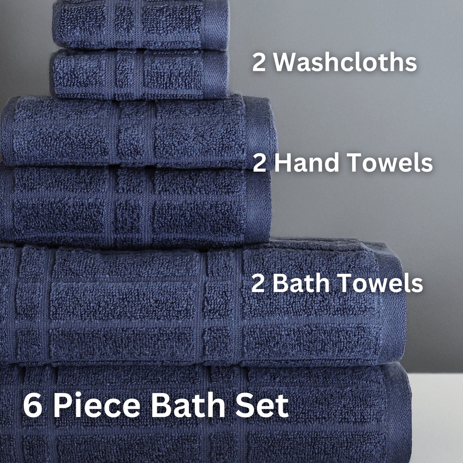 Upgrade your bathroom with the Mainstays Performance 6-Piece Bath Set, designed for everyday comfort and lasting durability. Crafted from 100% cotton, these towels offer a soft yet absorbent feel, perfect for drying off quickly after a shower. The set includes two generously sized bath towels (30" x 54"), two hand towels (16" x 26"), and two washcloths (12" x 12"), giving you everything you need for a refreshed bathroom setup. Featuring a unique all-over texture on one side and a smooth, solid reverse, these towels deliver both style and versatility. Plus, they’re Oeko-Tex Made in Green certified, ensuring they meet high environmental and safety standards. Whether you're stocking up for your home or upgrading your guest bathroom, this set offers the perfect blend of performance, quality, and value. About this item 6-piece set - Includes 2 bath towels, 2 hand towels, and 2 washcloths. 100% cotton - Soft, absorbent, and gentle on skin. Textured design - Stylish all-over texture on one side, smooth solid reverse. Generous sizing - Bath towels (30" x 54"), hand towels (16" x 26"), washcloths (12" x 12"). Everyday durability - Designed for long-lasting performance and repeated washing. Eco-friendly certification - Oeko-Tex Made in Green certified for sustainability and safety. Versatile & stylish - Perfect for home, guest bathrooms, or dorms. On Jul 17, 2025 at 01:49:11 PDT, seller added the following information: