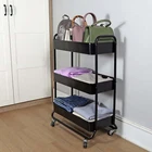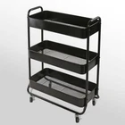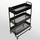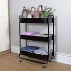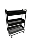 Product details Mainstays Wide 3 Tier Metal Utility Cart, Rich Black in Powder Coating. Instantly adds storage space to your kitchen, office, bathroom and beyond. It is ideal for storing tools, utensils, supplies, food, beverages, toiletries, and more. Easy assembly with hardware included. Locking wheels on bottom allow for easy movement and access. Sturdy metal construction can accommodate enough and heavy things. Storage organizer trolley cart with handle. This cart can be used not only in the kitchen, but also in the bathroom. Mainstays Wide 3 Tier Metal Utility Cart Durable metal frame construction; Rich black in powder coating finishing; 4 easy rolling casters, and with 2 locks; Suitable for adult and kids; Item dimensions: 26.1in Width x 13.75in Depth x 35.63in Height ( 66.3cm x 34.9 x 90.5cm ); Multi-functional, versatile storage solution for laundry, bathroom, and more.