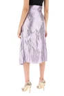 Maison Margiela wrap skirt made of metallic duchesse satin with a crinkled finish. The high-waisted straight cut is embellished with draped detailing and decorative buttons. Featuring a raw edge hem, it has a pocket on the right side and a side zip closure. Iconic 'Four Stitches' detail on the back. Model is 177 cm tall and wears size IT 40. Material: 42%PL 41%ME 12%SE Size Info: IT Color: Metallic Brand Code: S51ME0010 S78555 Season: 2024 Condition: Authentic, Brand New