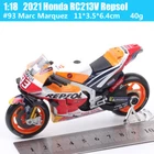 Very Small,For Collection Only!! Maisto 1:18 2021 Honda RC213V Repsol Motorcycle Model Bike Toy #93 Marc Marquez Brand:Maisto Scale: 1:18 Size:11*3.5*6.4cm 40g Material: Most Part Is Plastic + Few Metal Wheels Can Move HandBar Can Turn Left Right Nice Painting For Collection Detailed Diecast Metal Replica