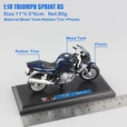 1/18 TRIUMPH SPRINT RS touring bike scales model Brand:Maisto Scale: 1:18 Size:11*4.5*6cm 80g(With Base) Material: Most Part Is Plastic + Only Tank Is Metal Nice Painting For Collection Detailed Diecast Metal Replica