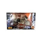 The product is a Maisto die-cast model of a black 1997 Harley-Davidson FLHT Electra Glide Standard motorcycle in 1:18 scale. It is made of cast iron and plastic.