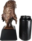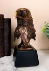 • This Majestic Bald Eagle Bust Figurine is made of the highest quality resin, undergoing the process of bronze electroplating giving it a uniform shine on the inside as well as the surface of the figurine. To add sculptural aesthetics and display worthiness, we add accent faux black wooden base to the sculpture. • This Majestic Bald Eagle Bust With Its Base measures 8.25" tall, 4" wide and 3.5" deep approximately. The base part alone is 2.5" high and 3.25" in wide. The sculpture weighs about 2 pounds. • Upheld for generations as the image of freedom, the American Bald Eagle comes to life in this impressive, finely detailed statue. Add style and patriotism to the table, bookshelf or desk with this unique sculpture. It is a wonderful gift to a patriotic love one in your Christmas shopping list. • Bold and majestic in appearance, this bald eagle sculpture will beautify your office or home. The sculpture embodies the term 'Eagle Vision', with wonderful details from the feathers to the eyes. • Props in photos are not included with the item.