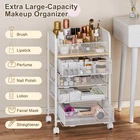 Makeup Cart Organizer with 4 Drawers, Large Floor Skincare Organizers, Vanity Storage Organizer Cosmetics Display Cases for Skin Care Perfume Nail Polish, White (Patent Pending) Large Capacity: This makeup cart with wheels is designed as open space and four storage drawers. The top display table for holding makeup brushes, cleansers, lotion; four big drawers can store combs, straightener, facial mask, and more Classified Storage: The rolling makeup cart has two drawers with dividers can be categorized to store lipsticks, perfumes, and nail polishes. Depending on the size of the items, the dividers can also be freely combined and separated into different space areas Mobile & Fixed Use: Rolling on four 360° swivel casters, this skin care organizer can be moved freely. Built-in brakes on front two casters help to keep it in place. Makeup brush organizer can also be placed underneath dressers with the wheels removed Multifunctional Storage Cart: This makeup cart with drawers can be used in a variety of scenarios. You can place it in the bathroom or next to the vanity to keep skincare, cosmetics, hair tools and more organized. You can also place it in the living room, den, etc Quality Materials & Easy to Assemble: Made of enhanced durable MDF and thickened steel, the hair tool storage can hold up to 66 lbs, each drawer can hold up to 11 pounds. Package includes illustrated instruction and parts have been labeled. You can be easily set this skincare organizers up in half an hour Perfect Customer Service: The Cosmetics Display Cases overall size: 16.5''L x 11.4''W x 27.4''H. If you have any concerns about this makeup storage cart with drawers, please don't hesitate to contact us, we will give you a solution within 24 hours