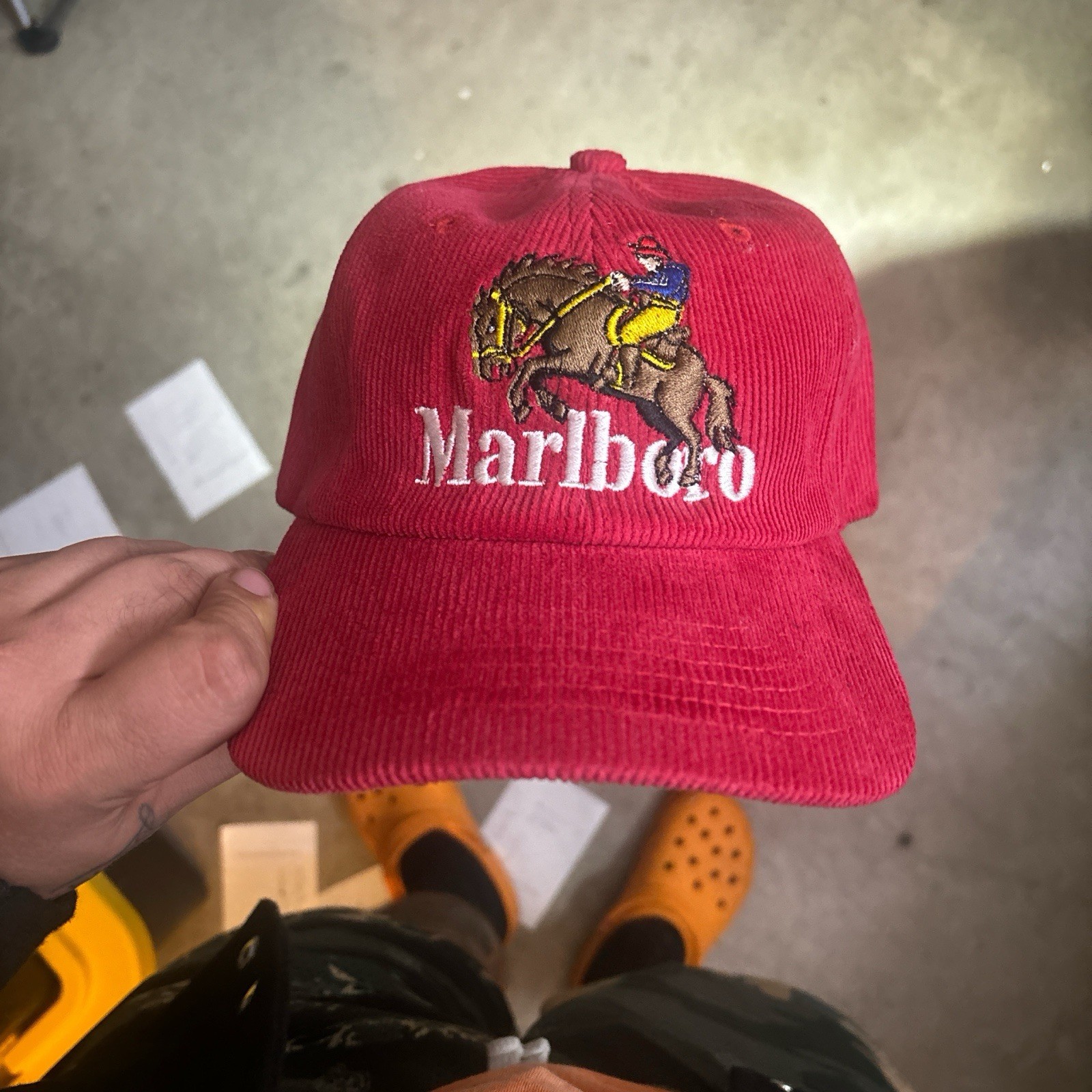 The Malboro Cowboy Corduroy Hat is a stylish and retro-inspired accessory for men, featuring a solid red color and a classic cowboy hat style. Made from corduroy fabric, this adjustable hat in one size fits all adds a touch of nostalgia to any outfit. Perfect for a casual day out or a themed event, this hat from the beloved Malboro brand is a must-have for those looking to make a statement with their fashion choices.