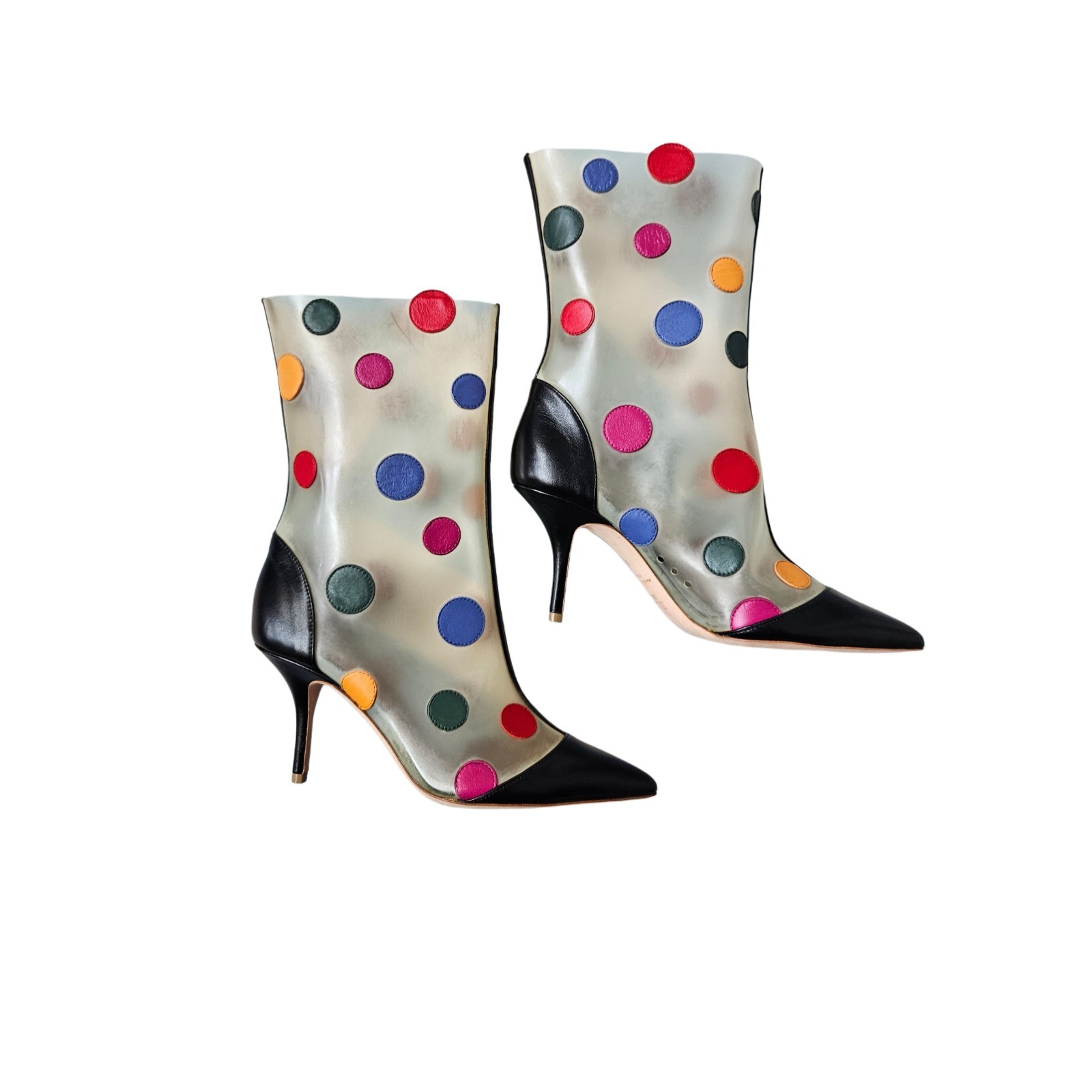 Malone Soulier Mulitcolor Polka Dot Pvc/Leather Heeled Boots Attributes Material: PVC/Leather Size: 38 Color: Multicolor Condition: Good condition, has scuffed at the back