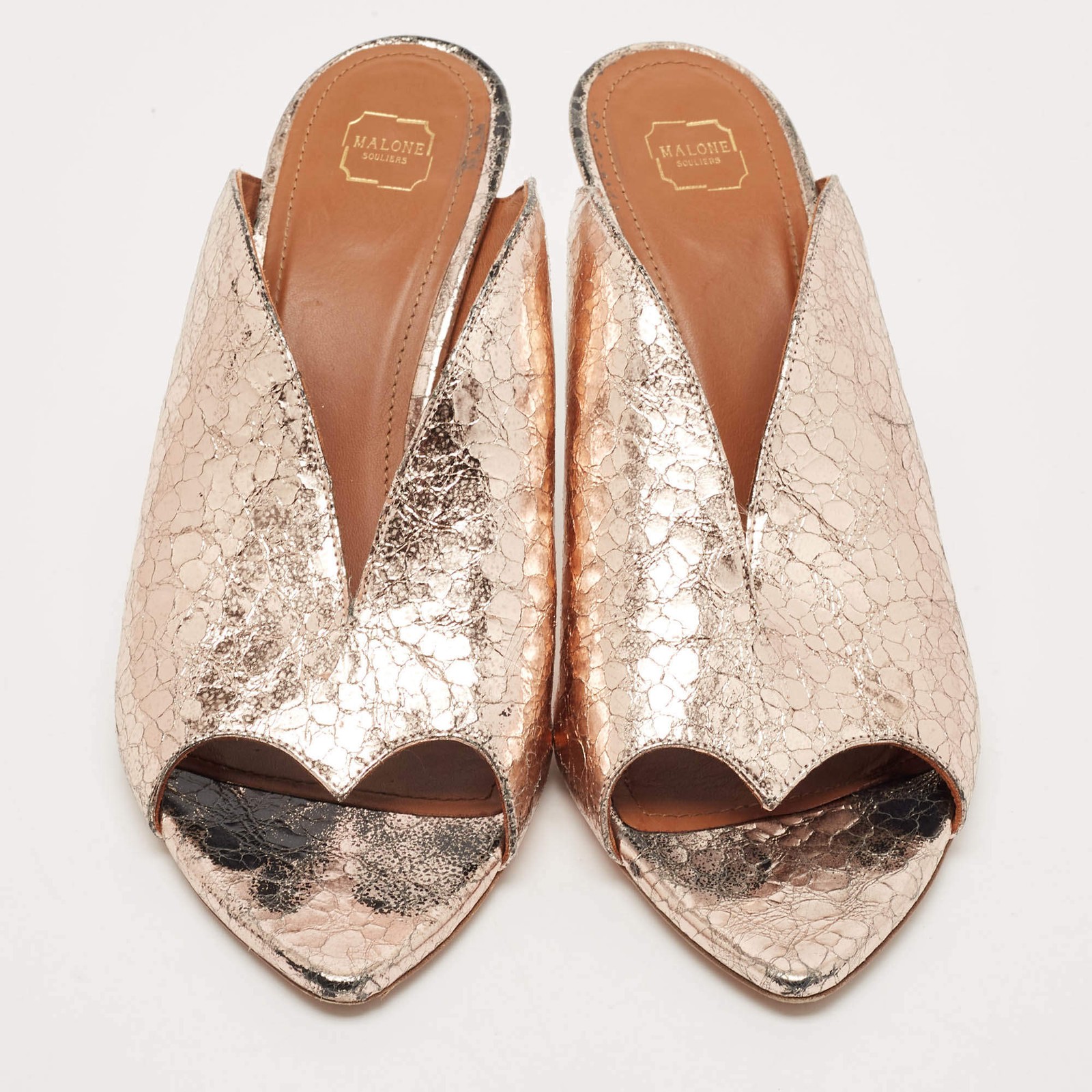 Our eBay Store About Us Contact Us Add to Favorite Sellers Malone Souliers Gold Metalic Leather Mules Size 40 These gold mules are pure glam. The metallic leather catches the light, making them the ultimate party shoe (or just a statement-making everyday pick). Product Details Brand Malone Souliers Color gold Includes The Luxury Closet Packaging Outsole Length 22 cm Outsole Width 9 cm Size 40 Certified by The Luxury Closet This item has gone through a detailed authentication process overseen by our experts. We offer a lifetime guarantee of authenticity on all our items. How We Check The in-house team of experts at The Luxury Closet is highly trained to verify the authenticity and the condition of the luxury products. They ensure that only 100% authentic items are put on sale.The evaluation process is unique with its own mix of assessment criteria and differs according to the category. Each item is evaluated based on the following combination of hallmarks, hardware, stitching, symmetry, material, craftsmanship, stamping, codes, hologram stickers, and packaging. Our authenticators also check if the items have been modified or amended (e.g., aftermarket diamonds, replaced batteries, repaired bags, etc.) International Buyers Import duties, taxes and charges are not included in the item price. These charges are the buyers responsibility. Please check with your country’s customs office to determine what these additional cost will be prior to buying.