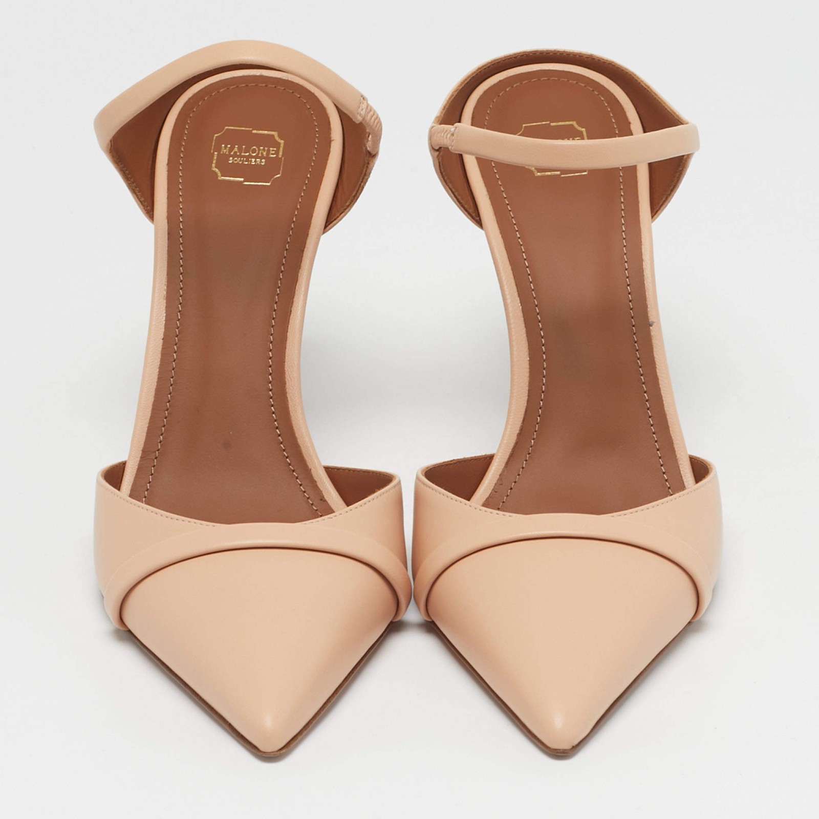 Our eBay Store About Us Contact Us Add to Favorite Sellers Malone Souliers Uma Size 38.5 Beige Leather Mules A pointed toe and slim heel give these beige leather mules a pared-back look. The open back and light strap detail keep the design practical while maintaining a luxe finish. Malone Souliers focuses on clean lines here, making them an easy option for both daytime and evening wear. Product Details Brand Malone Souliers Color Beige Includes Original Dustbag, Original Box, extra heel tips, Info Booklet Outsole Length 24 cm Outsole Width 8 cm Size 38.5 Certified by The Luxury Closet This item has gone through a detailed authentication process overseen by our experts. We offer a lifetime guarantee of authenticity on all our items. How We Check The in-house team of experts at The Luxury Closet is highly trained to verify the authenticity and the condition of the luxury products. They ensure that only 100% authentic items are put on sale.The evaluation process is unique with its own mix of assessment criteria and differs according to the category. Each item is evaluated based on the following combination of hallmarks, hardware, stitching, symmetry, material, craftsmanship, stamping, codes, hologram stickers, and packaging. Our authenticators also check if the items have been modified or amended (e.g., aftermarket diamonds, replaced batteries, repaired bags, etc.) International Buyers Import duties, taxes and charges are not included in the item price. These charges are the buyers responsibility. Please check with your country’s customs office to determine what these additional cost will be prior to buying.