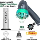 Product Description Mamba Loader XL V2-55 2g 55mm USB Electric Herb Grinder Grind, mill and dispense your most-reached-for herb and fine spices faster than ever! Evenly distribute your herbs across the grinding tray. Take care not to overload it! Easy Automatic Grinding and Milling Unlocks Flavours and Aromas Fast and one-handed electric herb and fine-spice grinding with no contamination, spillages nor wastage Holds up to 2g of material in a 55mm wide head All aluminum head with upper and lower razor sharp teeth USB Rechargeable 1500mAh battery. Cord and accessories included NB. Not suitable for pepper corns, beans, shells, or hard nuts Play Video FILLING AND CLEANING ACCESSORIES No Muss, No Fuss The grinding head's clear-spout allows for direct hygienic dispensing of herbs. Just drop a pre-rolled cone into the holder then fill. Evenly pack material with the stick/poker for no air voids Complete with triangle pick and mini-scoop cleaning accessories Rapid Electric Grinding - In the Palm of Your Hand Holds up to 2g of Herbs Grinding heads are precision milled from anodized aluminum alloy with curved razor sharp teeth Cuts and pushes through material without clumping up USB Powered Electric Motor Grind product/material 20X times faster than by normal hand grinding Electric motor powered by a rechargeable 1500mAh Li-ion battery It Gets The Hard Work Done Pushing the Rocker Switch in left and right directions prevents jams Gain therapeutic benefits for infirm hands with limited mobility and strength Convienient USB Recharging Includes a USB Type-C lead to connect to any USB power output eg. a phone charger or notebook port Please fully charge the grinder before first usage Mamba Herb Grinders are the perfect kitchen tools for any herb lover. Fast and easy to use, start grinding and milling with trouble-free ease The Mamba Grinder Family Mamba Lite Add to Cart Mamba Original Add to Cart Mamba XL Loader Add to Cart Mamba Monster Add to Cart Mamba Monster Loader Add to Cart Customer Reviews 3.9 out of 5 stars 1,527 4.4 out of 5 stars 5,949 4.2 out of 5 stars 2,021 4.3 out of 5 stars 15 4.3 out of 5 stars 15 Price $20.89 $ 20 . 89 $32.28 $ 32 . 28 $44.64 $ 44 . 64 $54.99 $ 54 . 99 $56.99 $ 56 . 99 Features All Plastic Herb Grinder Alloy Head Grinder XL Alloy Head & Loader System XL Alloy Head & Loader System XXL Monster & Loader System Torque 2Nm 3Nm 4Nm 6Nm 6Nm Capacity 0.75g 1g 2g 3.5g 3.5g Grinder Size (Dia) 50mm 50mm 55mm 63mm 63mm Battery Capacity (MAH) 600 1200 1500 2000 2000 Battery Ni-MH Battery Li-ion Battery Li-ion Battery Li-ion Battery Li-ion Battery Top About this item Similar Product information Questions Reviews From the brand Mamba Herb Grinder Pick up a Mamba Herb Grinder today and release those favorite aromas and flavors! Previous page The Mamba Electric Grinders Range Traditional hand grinding and dispensing methods are just too slow and hard. You have to use two hands, it's easy to clog, and you can't grind very much at a time What makes our products unique? Get rapid battery-powered razor sharp teeth and a one-handed Rocker Switch for jam-free powered motions - all in a modern design with stylish colors Your Portable Herb Grinder Mamba Herb Grinders are the perfect kitchen tools for any herb lover. Fast and easy to use, and complete with a whole set of accessories for trouble-free herb grinding Mamba Original V2 Herb Grinder Visit the Store Mamba Loader XL Herb Grinder Visit the Store Next page