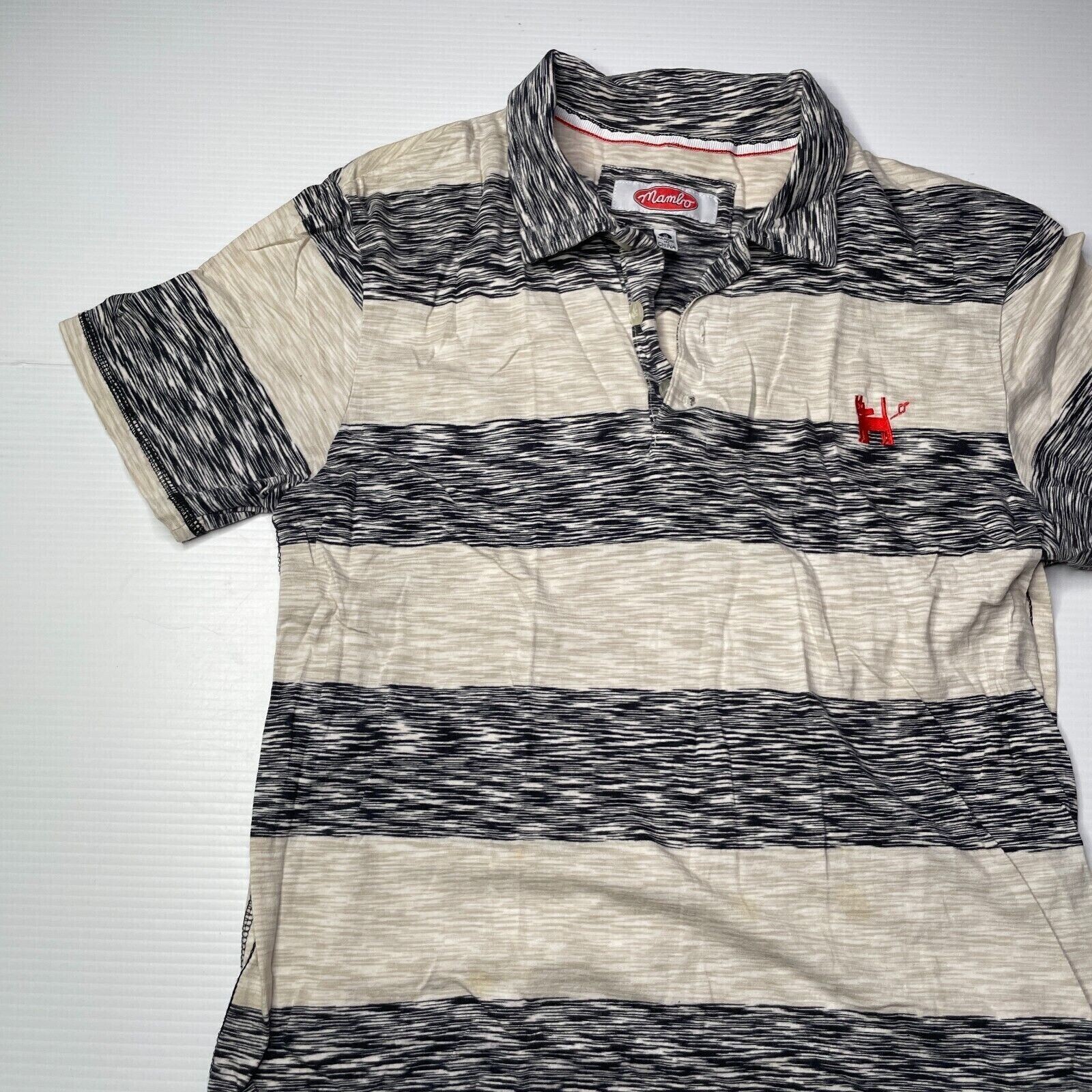 Welcome to our Ebay Store~! Item: Mambo Striped Logo Polo Shirt Mens Size S Casual Style Summer Fashion Fit Condition: Pre-Owned Very Good Condition Measurements LAYING FLAT: Armpit to Armpit: 40 cm Shoulder to Shoulder: 40 cm Length: 69 cm == Shipping: Shipped Fast and Tracked with Australia Post Standard Parcel 2-3 Day Handling Time Maximum