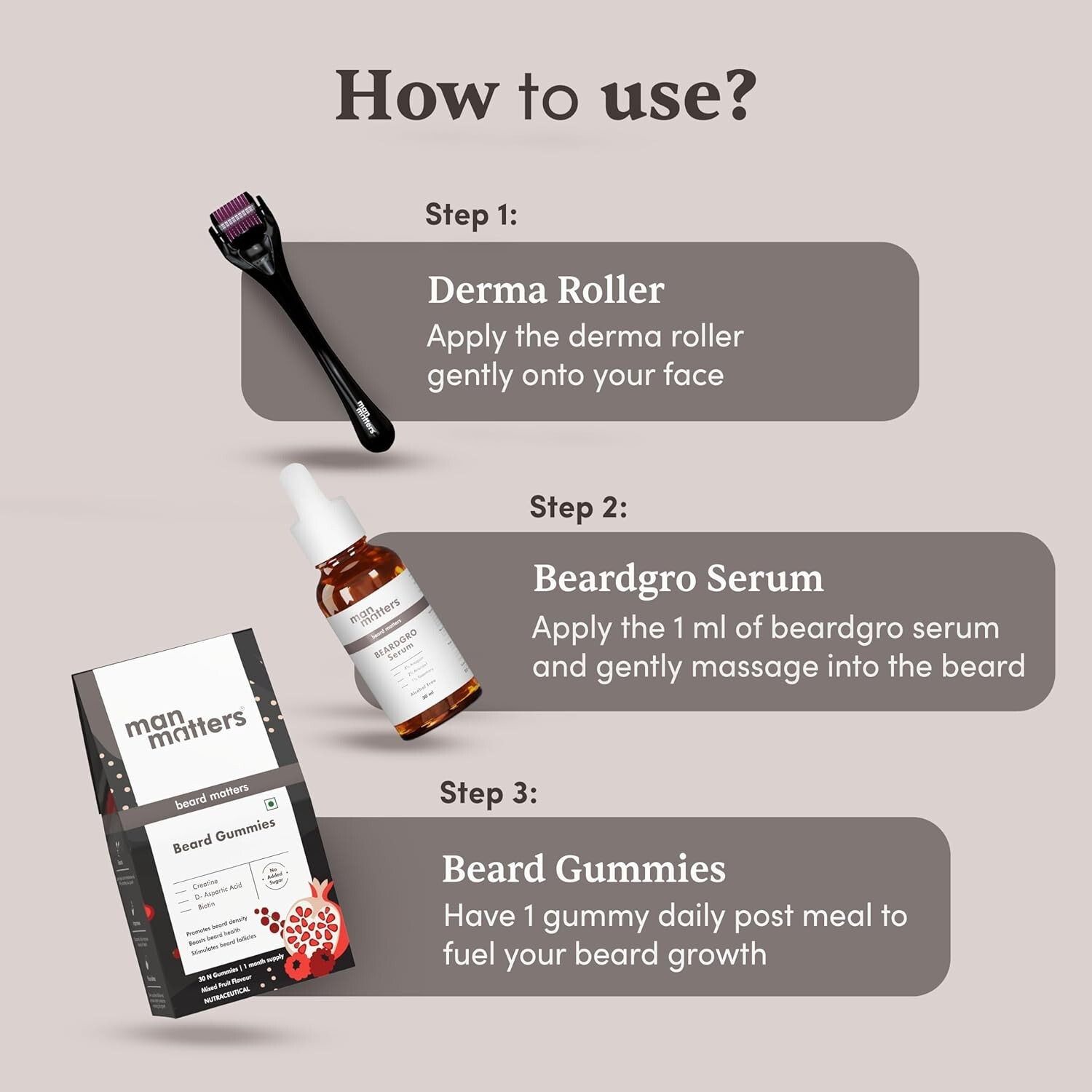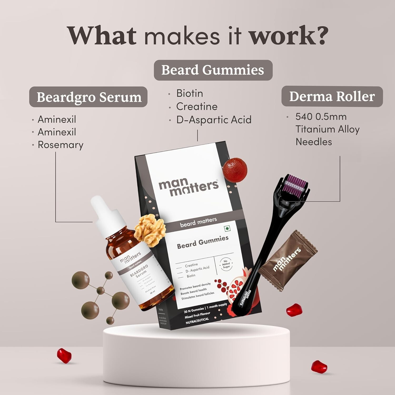 Important information Ingredients: Cllover, Gokshura, Moringa, Aminexil, Rosemary, Anagain Product Description Previous page Stimulates Dormant Beard Follicles Revitalizes dormant beard follicles to trigger new beard growth. Next page Reactivates Beard Cells Increases Beard Density Thickens Beard Reduces Follicle Aging Previous page Ultimate Follicle Booster These world-class ingredients work together to improve blood circulation to the follicles & nourish. Next page Anagain & Aminexil Rosemary Extract Moringa Gokshura Co-Created By Dermatologist Clinically Proven Ingredients Paraben Free SLS Free