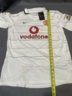 Show your love for Man United with this retro 2003-2005 away white jersey, featuring the legendary Ronaldo #7. This short sleeve jersey is perfect for any soccer fan, especially those who support Manchester United. The jersey is by Nike and is available in men's large size. The jersey is primarily white in color and features the iconic Manchester United logo on the chest. It's a great piece of fan apparel for any soccer match or game viewing party. This product is a must-have for any true Man United fan. Order as soon as possible to receive before the holiday if you have any questions lemme know