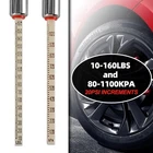 Amplio rango de medición: este manómetro mide presiones de 10 a 160 libras o de 80 a 1100 kPa, lo que lo hace adecuado para varios vehículos, incluidos automóviles, camiones, motocicletas y bicicletas. Materiales de alta calidad: el manómetro está fabricado con aleación de zinc y cobre, lo que garantiza su durabilidad. Los componentes clave incluyen un cabezal doble de aleación de zinc, un núcleo de cobre y tubos de cobre niquelados, que contribuyen a lecturas precisas y confiabilidad a largo plazo. Escala de doble cara: la regla de plástico del manómetro tiene escalas en ambos lados: números negros para 10 a 160 libras y números rojos para 80 a 1100 kPa, lo que permite a los usuarios elegir la unidad de medida que se adapte a sus necesidades. Mandriles de doble cabezal: equipado con mandriles de doble cabezal, el manómetro incluye un cabezal recto para acceder a las ruedas exteriores y un cabezal en ángulo para un acceso más conveniente a las ruedas interiores o a los vástagos de válvulas de difícil acceso. Incluye un gancho: el medidor viene con un gancho de hierro galvanizado para transportarlo y guardarlo cómodamente, lo que aumenta su facilidad de uso.