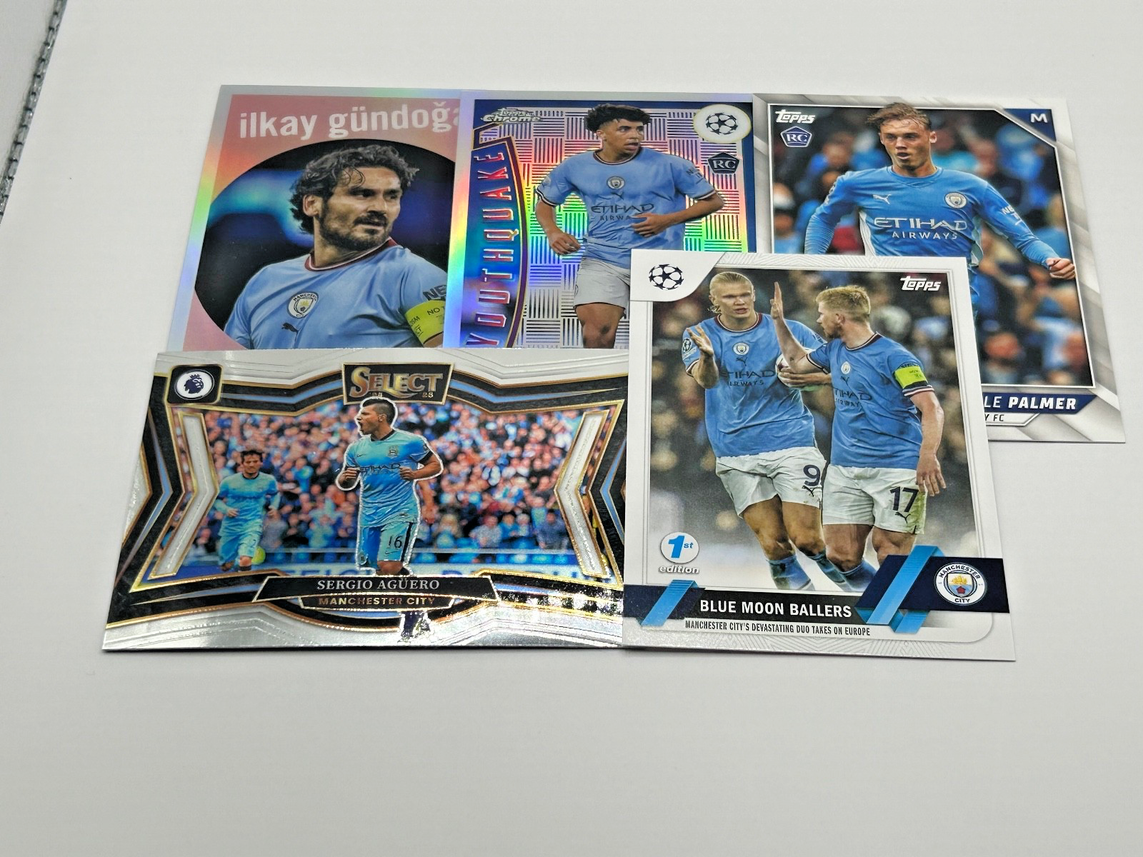 Manchester City Soccer Card Lot - 90+ cards total Erling Haaland Kevin De Bruyne Cole Palmer Sergio Aguero Liam Delap