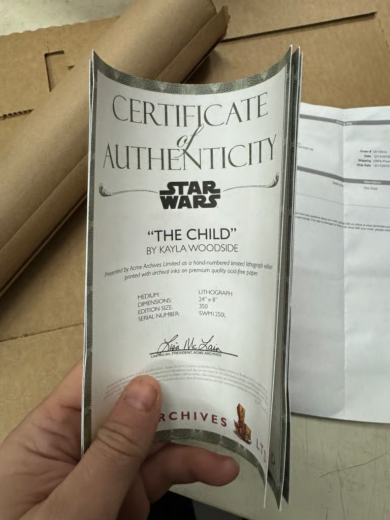 Mandalorian the child, dark ink art Star Wars Grogu, print by Kayla Woodside It's never been removed from the poster roll.