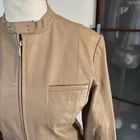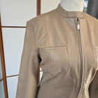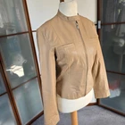 Mango genuine leather beige jacket zip up L size 10