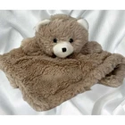 Soft fur teddy bear lovey cuddle blanket. Item has been machine washed & air dried. Eyes & mouth are embroidered. Measures approximately 14”x14”. By Manhattan Toys, however tag has been removed. Item is from a smoke free, pet free environment. 0779QQ