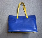 Manila Silver & Riley Blue And Yellow Leather Large All Purpose Tote Bag good condition any flaws are shown in photos inside is like new measurements are in photos SKU(OS)
