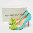 Manolo Blahnik Arleti Frill Size 40 BlueGreen Suede Pumps