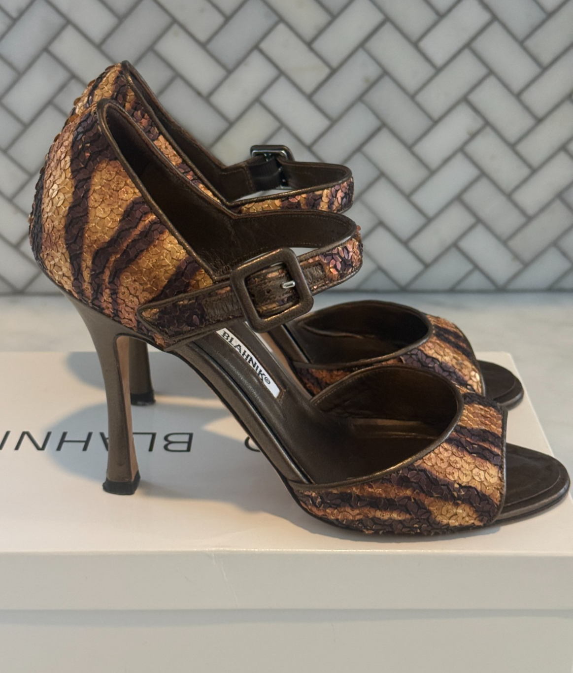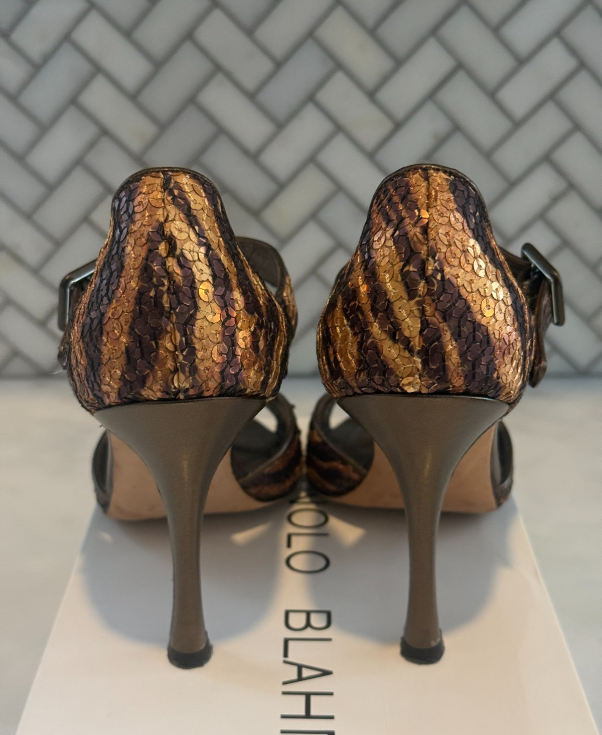 Manolo Blahnik Tweed and Leopard Print Kitten Heels Sz.7.5