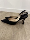 Great condition. The Manolo Blahnik Carolyne Slingback Fabric Satin Pumps in Black are stylish and sophisticated high heels designed for parties or cocktails. With a pointed toe, ultra high stiletto heel, and leather outsole, these pumps exude luxury and elegance. Made with satin fabric and leather lining, they are perfect for the summer, fall, and spring seasons. The slingback feature adds a touch of glamour, while the brand name guarantees designer quality and craftsmanship. Ideal for women who appreciate both fashion and comfort, these pumps are a must-have addition to any wardrobe.