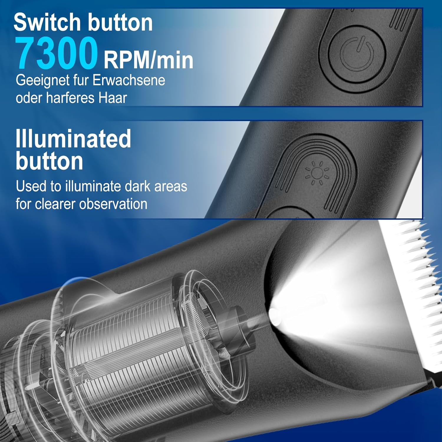 Special Care: Our Antyoper electric groin & body mens grooming kit allowing you to shave or trim any length of hair in all body zones, including the most sensitive ones. The LED light design provides precision in any direction, wet or dry, making it easily portable. Its hypoallergenic ceramic blades avoid irritation and allow you to shave with confidence. Stretch out your skin and cut slowly and steadily for the best results, and experience a new level of comfort and care. Ergonomic Design and Waterproof: The sleek design of our trimmer for men/women helps you grip it easily even when it's wet. It's waterproof, allowing you to use it in the shower or bath for easy trimming and cleanup. Perfect for trimming back hair, chest hair, pubic hair, bikini hair, and underarm hair, this electric trimmer will quickly become your go-to grooming tool. Long-Lasting and Rechargeable Dock: The built-in battery is rechargeable via USB and provides up to 120 minutes of run-time when charged for about 1.5 hours. It's a durable and reliable choice for all your grooming needs. Featuring electric trimmer guards with four lengths (3mm, 6mm, 9mm, 12mm), it suits any trimming preference. Waterproof: It's easier to trim in the shower, as the water washes away your trimmings, makes it easier to cut Back hair/Chest hair/Pubic hair. It's ideal to get one that can survive a splash whether you shave in or out of the shower. Confidence-Boosting Grooming: Tend to your own bodily gardens with ease and feel confident and presentable every day. Use the groin hair trimmer for a smoother, more comfortable shave that releases your natural charm. Get ready for every date, job interview, or special occasion with ease, knowing you look and feel your best. Product Description