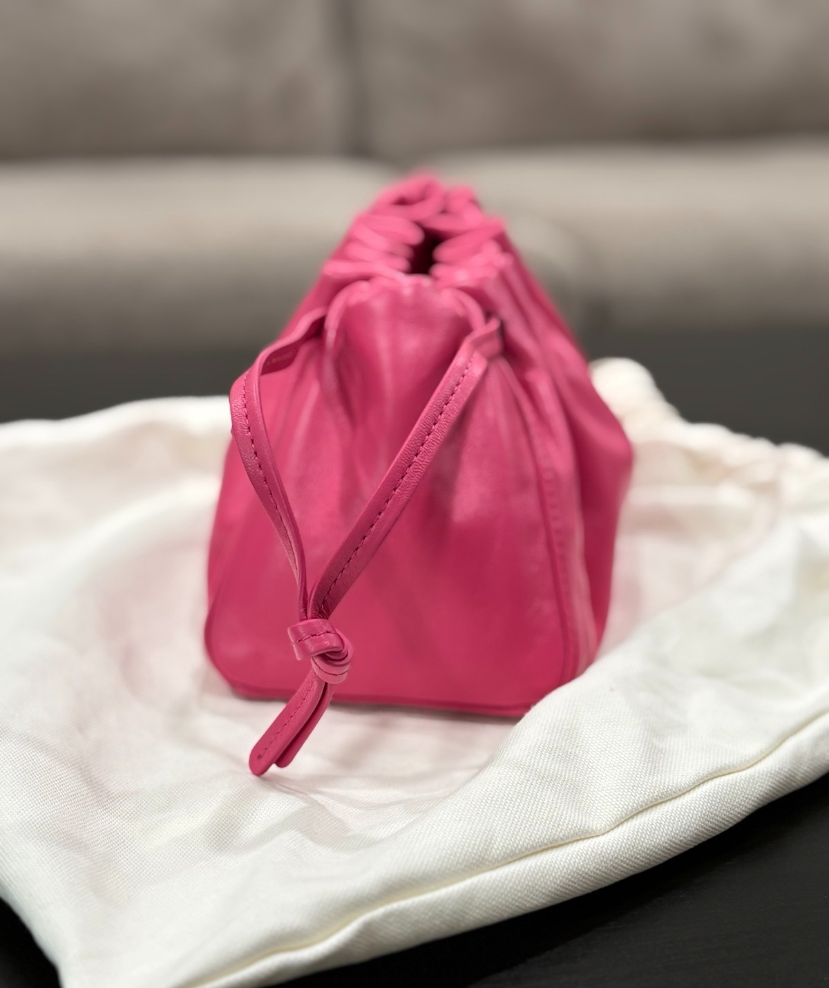 Mansur Gavriel Mini Bloom Leather Drawstring Bag – Dolly & Leaf Delicate and distinctive, the Mansur Gavriel Mini Bloom Leather Drawstring Bag captures the brand’s signature philosophy of understated elegance and modern minimalism . Crafted from supple leather , the design is presented in a soft dolly hue with a contrasting leaf-toned handle and strap , creating a subtle interplay of color and texture. The drawstring silhouette , both sculptural and feminine, lends a sense of effortless charm, while the compact proportions make it perfect for day-to-night versatility. Thoughtfully designed as both a clutch and crossbody , the Mini Bloom offers refined functionality without compromising its delicate aesthetic. An emblem of Mansur Gavriel’s quiet sophistication , the Mini Bloom Bag is more than an accessory — it’s an expression of modern artistry and timeless grace , made for women who find beauty in simplicity.