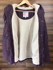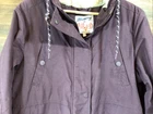 Mantaray Purple Fleece Lined Hooded Coat / jacket Size 16 Cotton blend. Fully lined. Body lined in fleece material. Zip & popper fastening. Hood with drawstring. Two large popper fastening pockets. Two hand warmer pockets. Long sleeves. Toggle drawstrings to hem. Hip length. 28” nape to hem Pit to pit approx 23” Excellent used condition. U.K. buyers only. Smoke & pet free home.