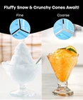 Take the Strain Out of lce Shaving - Enhance your desserts, beverages, and cocktails with a refreshing twist using our shaved ice machine; Effortlessly create icy delicacies like slushies and snow cones, elevating any gathering into a 'cool' event! Craft Countless Cool Creations -Use our snowcone machine to make Hawalian shave ice, an ltalian style slushy, an icy slush puppy, a Snoopy themed ice cream, or just add syrup for a hint of nostalgia! A Complete lce Shaving Kit - With fine and coarse stainless steel blades, this snow cone maker can create fluffy snow or crunchy cones to suit your taste; Also includes a handy silicone ice cube tray and a large-capacity container to catch all that frozen goodness! No-Fuss Frosty Delights - The hand-crank mechanism takes the strain out of ice crushing while your dishwasher makes clean-up a breeze: This ice shaver machine was designed with convenience in mind, giving you more time to chill and indulge in frosty delights! Large Capacity, Endless Refreshment - The large container can hold up to 1.2 L of shaved ice, perfect for serving multiple people or making larger batches; Plus,the compact and portable design makes it easy to take this snowcone maker with you on picnics or summer parties! Elevate your desserts, beverages, and cocktails to a whole new level of coolness with this effortless and versatile kitchen gadget. Elevate your desserts, beverages, and cocktails to a whole new level of coolness with this effortless and versatile kitchen gadget. Say goodbye to hassle -our hand-crank mechanism takes the strain out of the process, while the dishwasher- compatible parts ensure easy cleanup. Spend more time chilling and indulging in your frosty delights and less time worrying about the mess with Basswood snowcone machines. With the ability to create a variety of icy delicacies like slushies,snow cones, and Hawalian shaved ice, this snow cone maker machine is perfect for any occasion. Whether you're hosting a summer party or enjoying a family gathering, our icee machine wil turn any event into a refreshing and fun experience. Compact and portable, our shave ice machines are perfect for taking with you on picnics, outdoor events, or even summer parties.Create cool concoctions like ltalian-style slushies,icy slush puppies, or Snoopy themed ice creams. The possibilities are endless! Designed with convenience in mind, this complete shave ice machine crusher kit includes fine and coarse stainless steel blades, allowing you to customize the texture of your frozen pleasures.The large-capacity container can hold up to 1.2 L of shaved ice, making it ideal for multiple people or larger batches of icy delights.