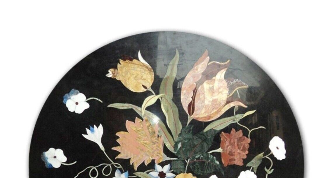 Welcome To Unique-Handicrafts Shop Description Very unique Art by Indian Artist ,Coffee/Side Table top Used Material: Marble & Multi Semi Precious Gemstones Inlaid Size: 18"x18" inch Color: Black Shape: Round Pattern: Handmade Room: Bedroom, Dining Room, Hallway, Home Office/Study, Kid’s Bedroom, Kitchen, Laundry/Utility Room, Living Room, Patio, Playroom Packaging: Wood & Foam Export Packing Shipping: Air Can be customize ,Please message your desired size Process of Making Marble Inlay 1. We are inlaying semiprecious stones in three different colors of marble White Marble,Black Marble & green marble. 2. The Marble used to inlay the semiprecious stone comes from city of Makrana, Rajasthan India. 3. First we cut the marble in different shape example Round,Octagonal,rectangle,oval & square shape. 4. After cutting the marble we paint the surface of marble with Hina(red Color) so we can sketch the geometry on the surface of Marble. 5. With the Help Of emery wheel we cut,polish & shape the semiprecious in different forms of flowers,buds,leafs & stems all the cutting of the semiprecious stones are manually cut by the artisans. 6. After cutting the semiprecious stones we assemble them to complete the motif & then the semiprecious stones are placed on the surface of marble so we can trace them on the surface of marble to make the exact size of the cavities once the stones are traced we remove the stones from the surface of marble & then manually we chisels the marble with the diamond chisels & tungsten carbide chisels once the cavities are completed we place the semiprecious stone in the cavities to check the depth of the stones. 7. When we are fully sure that the stone fits well in the cavities we use special kind glue to fix the semiprecious stones into the marble. 8. After completing the inlays into the marble we first rub the surface of marble with sandstone & then we polish the surface of marble with sandpaper which brings the natural shine on the surface of marble & to the semiprecious stone & we use wax polish to make the surface shiny. 9. Most interesting expect of this pietre dure( marble inlay with hard stone) all the designs are made by the artisans are purely an imagination of artist once made they cannot make another one exactly the same it will look similar but will not be the same. 10. This beautiful art is a dying art of Agra,India the artisans those make this beautiful art are the descendants of those families who built the Tajmahal in 17 century Tajmahal is a monument of love & you can easily see the artwork done with the same technique on the walls of the Tajmahal. 11. I Invite you to come to Agra,India & visit the beautiful Tajmahal & you will surely be impressed & we request you give us a chance to show you the true handmade art of Agra by our artisans. 12. When you are purchasing this beautiful handmade Marble inlay art you will always be happy because all the pcs made by our artisans with love,hope & happiness. 13. You will always be enjoying the beautiful handmade marble inlay artwork secondly you will be supporting the local artisans of Agra,India to keep this beautiful dying art Alive. 14. All the purchase benefits the artisans & the buyer as there is no middle men in selling & buying. Inspiration/Story Behind This Product 1. This beautiful inlay art is a dying art of Agra,India the artisans those make this beautiful art are the descendants of those families who built the Tajmahal in 17 century Tajmahal is a monument of love & and one of the seven wonders in the world you can easily see the artwork done with the same technique on the walls of the Tajmahal. Note 1.The marble inlay table is made in Agra, India. 2.The marble inlay table will be delivered by FedEx or DHL free of cost door to door. 3.If there is any local tax,custom duties or Vat will be paid by the buyer at the destination. 4.The parcel is dispatch with proper packing & fully insured covering all kind of risk. 5.This marble table illuminates if the light arrangement is made under the plate. 6.It is an art piece which will be a beauty & the conversation pieces at home. 7.If You Are Looking Something Customize, Let Us Know We Will Make For You As Per Your Design, Size & Shape. 8. This is only Table Top & Base/Leg is not included. If you want stand/leg also, please contact us For Wholesale or corporate Inquiry please contact us. Thank you very much for admiring beautiful handmade marble inlay art. Please recommend your friends & family members to visit our ebay store this art is Dying art of Agra & we need your participation to keep this dying art alive. Thanking you in anticipation for your great support. If you are in Agra please email us we love to show you the process of marble inlay work at our premises