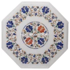 Product Information Table Size: According To Size Variations Material: Marble Shape: Octagon Color: White Thickness: 10-20mm Finished: Polished It can be used as a Dining Table, Guest table, coffee table, center table top in show room as well as a gift for your loved ones. The table top is made in Agra India & fully handmade. The top will be delivered by FedEx or DHL free of cost door to door. If there is any local tax,custom duties or Vat will be paid by the buyer at the destination. The parcel is dispatch with proper packing & fully insured covering all kind of risk. To maintain the table top is simple soap & water & dry cotton cloth. If You Are Looking Something Customize, Let Us Know We Will Make For You As Per Your Design, Size & Shape. This is only Table Top & Base/Leg is not included. Marble Inlay Table Tops We are Manufacturer & Exporter of marble inlay table tops and this stone inlaid art also known as Inlay work or Pacchikari or Pietre dura and we inlaid beautiful floral, Italian, geometric inlay patterns using semi-precious stones like lapis lazuli, malachite, turquoise, coral, cornelian, shell, mother of pearl, Jasper and Italian stones etc. After that we inlaid in Indian white marble, black marble, Indian green marble (Baroda green), .Indian Black Kudapaa Stone etc. These marble inlaid and on lay table tops have different shapes like Round Table top, Octagonal Table Tops, Rectangle / Dining table tops, Square Table tops, Chess Table tops, Taj Mahal Table tops, Custom Designs Table tops also make plain and inlay marble Table top Base and Stand. Then we can be used as dining tables, coffee tables, Center tables, conference tables, chess boards, reading tables, bar tables , Garden table, side and corner tables or any other use as per the indoor and outdoor decor. They can also be placed outdoors in the garden, as marble is stain free, offers great resistance to the forces of nature, and can withstand heavy temperatures. We also meet customized requirement and offer our marble table tops at industry leading prices. What is Marble Inlay Work? “ Marble Inlay work” is one of the most attractive art that done from marble. Same type of that adorns the Taj Mahal and other Mughal monuments.It is a closely protected traditional art and only a few expert exponents are available today. The delicate process involves cutting and engraving marble shapes manually. To start with, a predefined pattern e.g., floral design or geometrical design is engraved on the marble slab. Small pieces of marble of different shades are cut delicately to fit in these grooves precisely. These small pieces are then slipped in the grooves. Apart from marble, many other materials can also be used. History of Inlay Art: Inlay work on delicate precious stone began in the workshops of Florence in Italy around the end of the 16th century. This was known as PIETRA DURA.(Pietra= Stone, Dura= Hard) The Italians had created a classic artistic form and held a monopoly over it. From 1630 onwards pietra dura appeared on moveable, small objects as decorative panels, with bird and flower motifs, suitable for cabinet fronts and table tops. Some of these soon reached the Mughals in the form of presents. Of all the Mughal Emperors, Shah Jahan was the greatest patron of architecture in India. For him no amount of money or time was too much to create enduring, everlasting architectural beauty and through it be remembered always. It is in his buildings that one feels most compelled to make the connection between Mughal art and pietra dura. The Taj Mahal, the cenotaphs of the Emperor and his wife, the main floor and the surrounding marble railings bear very close resemblances to the pietra dura form. Thanks for Visiting... See our other items See our other items Track Page Views With Auctiva's FREE Counter