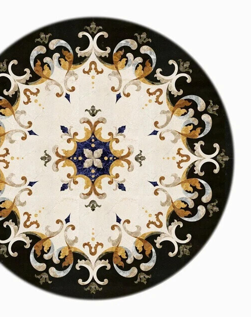 Product information Size: 36"x36" Inches Material: Marble & Semi Precious Stones Shape: Round Finished- Polished What is Inlay Art? One of the most attractive work of art that comes from marble is"Marble Inlay" work. It is the same work that adorns the Taj Mahal and other Mughal monuments. It is a closely protected traditional art and only a few expert exponents are available today. The delicate process involves cutting and engraving marble shapes manually. To start with, a predefined pattern e.g., floral design or geometrical design is engraved on the marble slab. Small pieces of marble of different shades are cut delicately to fit in these grooves precisely. These small pieces are then slipped in the grooves. Apart from marble, many other materials can also be used. History Of Inlay Art Inlay work on delicate precious stone began in the workshops of Florence in Italy around the end of the 16th century. This was known as PIETRA DURA.(Pietra= Stone, Dura= Hard) The Italians had created a classic artistic form and held a monopoly over it. From 1630 onward pietra dura appeared on movable, small objects as decorative panels, with bird and flower motifs, suitable for cabinet fronts and table tops. Some of these soon reached the Mughals in the form of presents. Of all the Mughal Emperors, Shah Jahan was the greatest patron of architecture in India. For him no amount of money or time was too much to create enduring, everlasting architectural beauty and through it be remembered always. It is in his buildings that one feels most compelled to make the connection between Mughal art and pietra dura. The Taj Mahal, the cenotaphs of the Emperor and his wife, the main floor and the surrounding marble railings bear very close resemblances to the pietra dura form. Process of Marble Inlay Art Master Craftsman carefully plans a design, which is etched lightly into the marble surface and later scored out with an iron chisel. Many of the tools of the trade are basically the same as those used by the Mughals hundreds of years ago. He then decides on the colour scheme depending on the requirements of piece being created. Semi-precious stones and gems are expertly chosen to give just the right graduation in colour and shade for the overall radiance of the pattern. They are shaped and polished by means of an emery wheel. Sometimes heat treatment is applied to certain stones to get a shading effect. The effort involved in making just one single flower can often take days of work, depending on the detail; it is not unusual to be designed from hundreds of different slices of stone. There are many varieties of coloured stone available for utilisation in marble inlay work: malachite, cornelian, jasper, mother of pearl, abalone shell, lapis lazuli, agnate, coral, turquoise and tiger eye to name just a few. The grooves are filled with their precisely corresponding shapes of coloured stone and secured in place with a white putty made from oil, and wax. Once the design is completely dry, the piece is polished with a mixture of sand, water and emery paper to give a shiny smooth finish. Shipping & Packaging For shipping we use DHL & FedEx Export packing sealed wooden, crate with foam plastic straps outside. If there is any Local Tax, Custom Duties or Vat at the destination, it will be paid by the buyer. Have a Nice Day